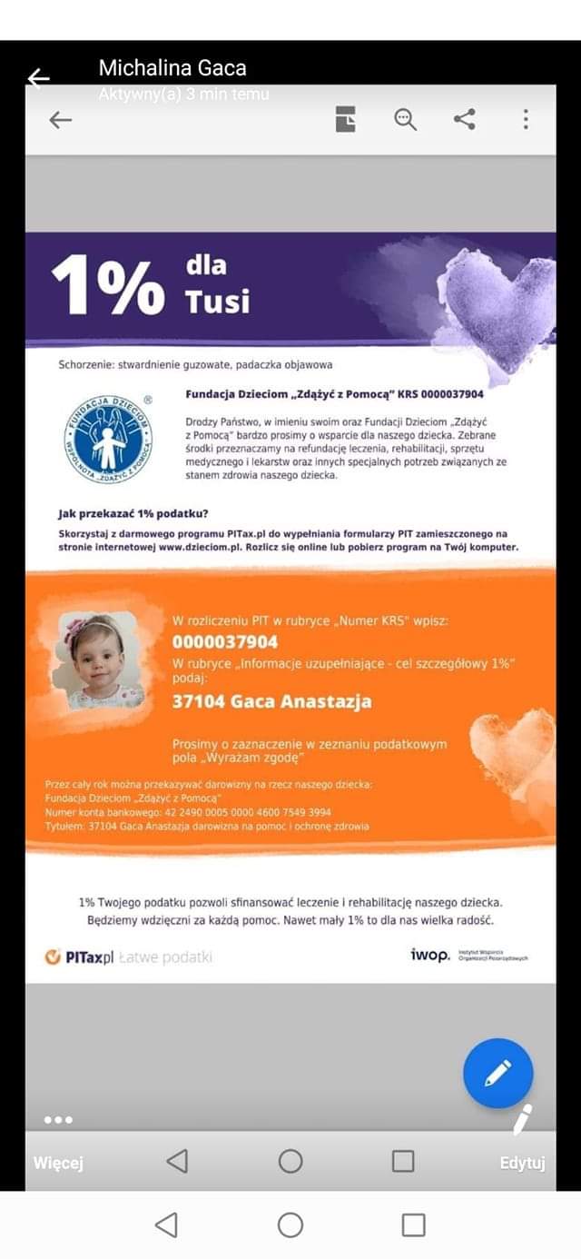 #drogiblabie jeśli się jeszcze nie rozliczyłeś z 1%, to ja polecam uwadze córeczkę kuzyna mojej przyjaciółki. Z góry dziękuję