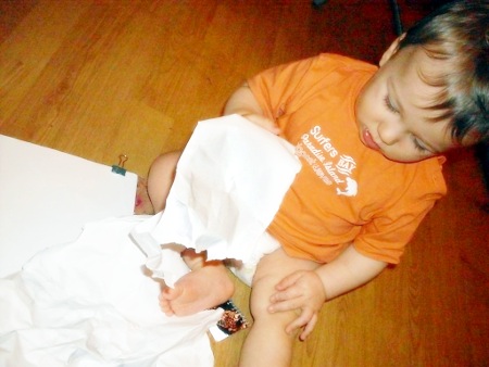 karincoma: #dziecko probujac przeraczkowac po mnie zasadzilo mi kopa w nos. Z przytupem. Teraz siedze z papierowym zakretasem w nosie.. Przemoc w rodzinie. |
