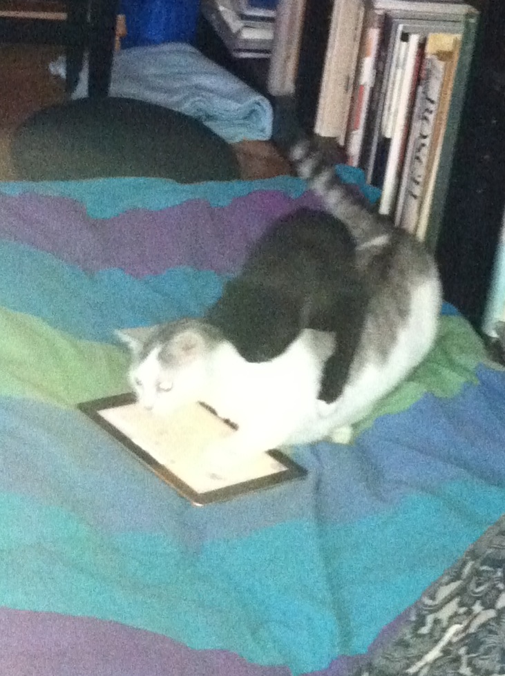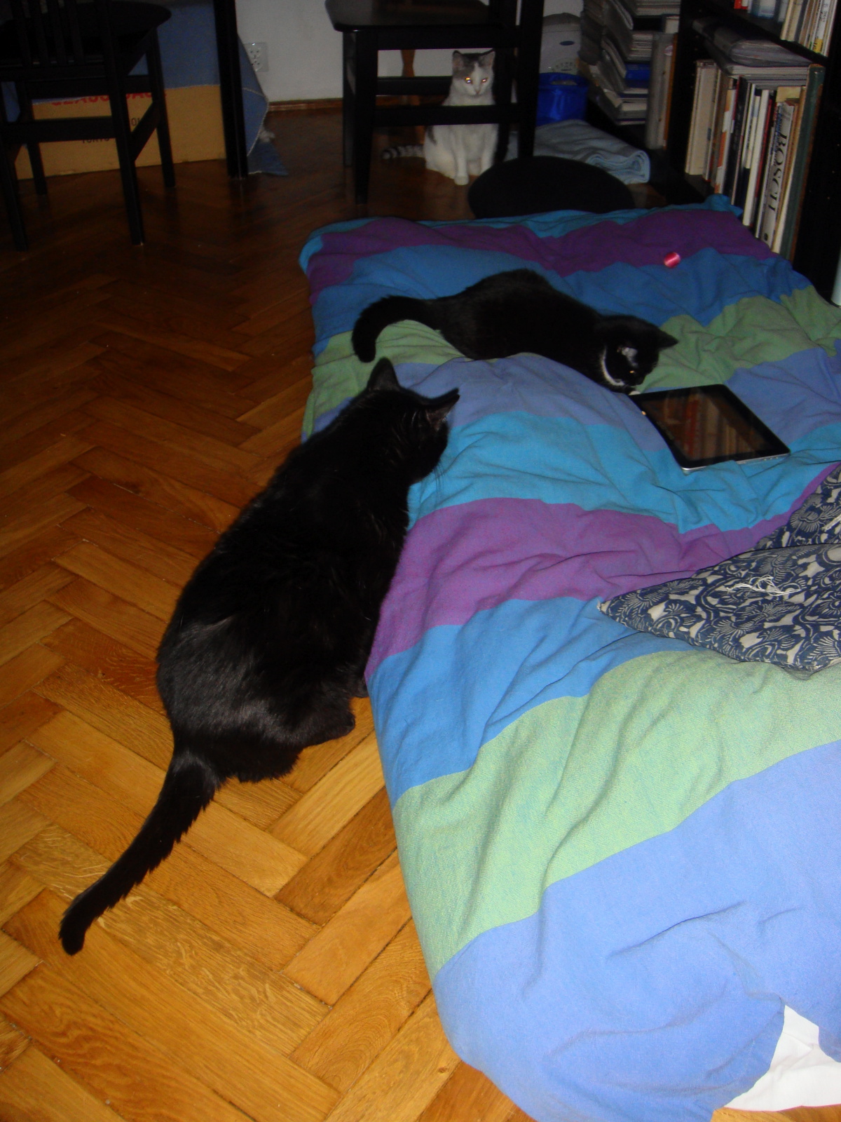 wszyscy chcemy być cyberkotami! od dołu: Moryc, iPad, #dziewczynkazburzy Ruri i Żiżi w głębi