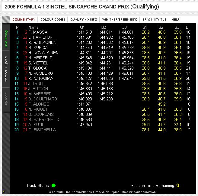 Kwalifikacje #f1 GP Singapore, 1.MAS, 2.HAM, 3.RAI, 4.KUB
