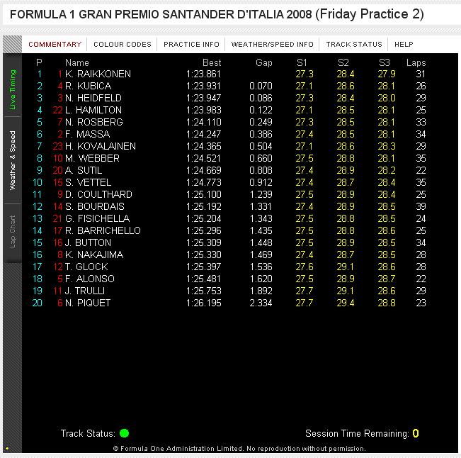 Wyniki drugiego treningu #f1 GP Włoch, Monza 2008
