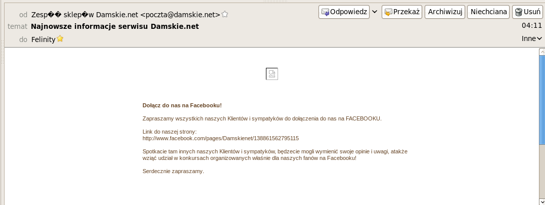 a nagrodę "Największe #fail'e newsletterowe" otrzymuje [damskie.net] - jak nie brak linkóów, to pliterek, obrazków i w ogóle czyjś szwagier to chyba robi