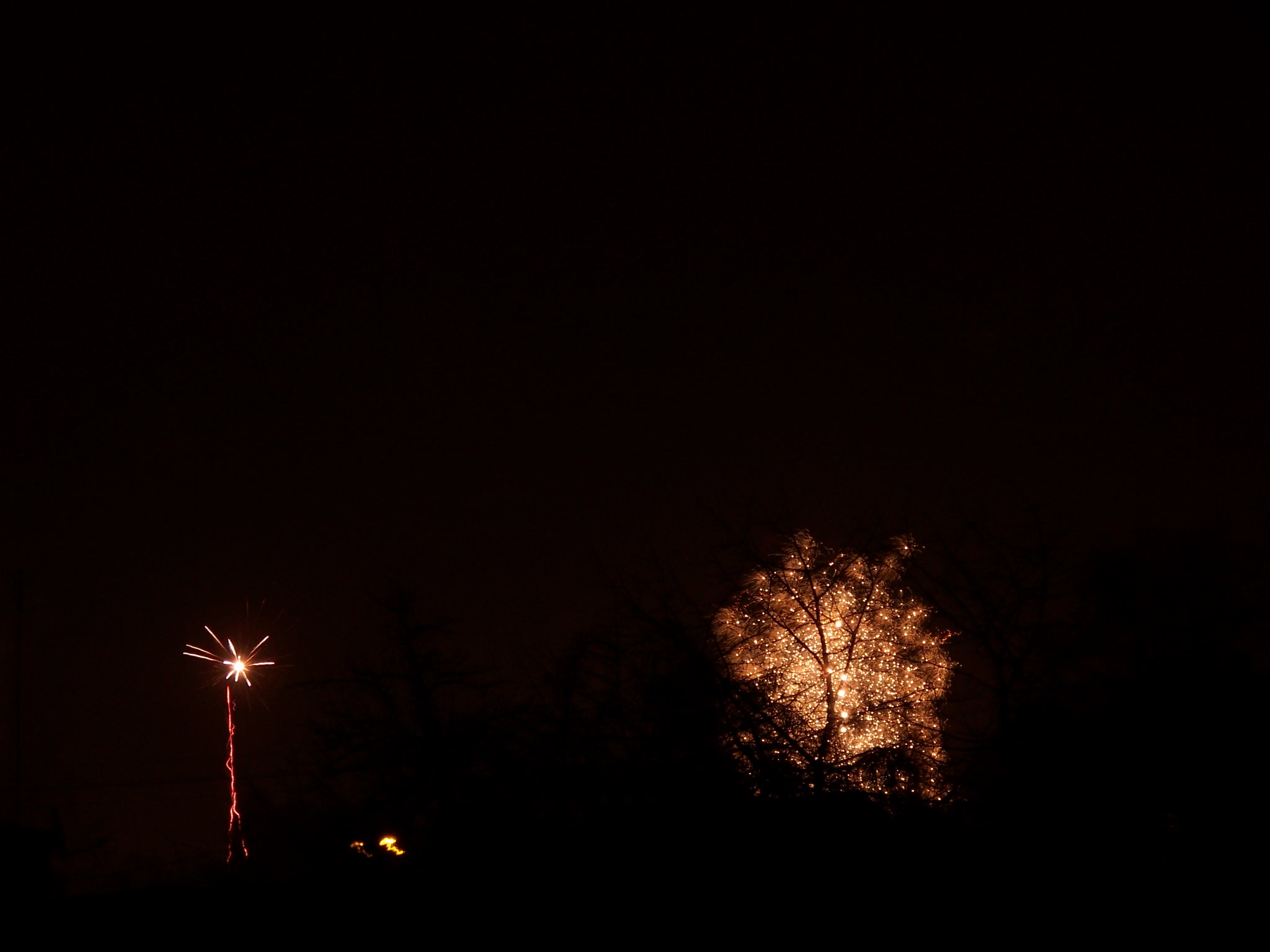#foto #sylwester #fajerwerki rozbłysło za drzewem- prawie choinka