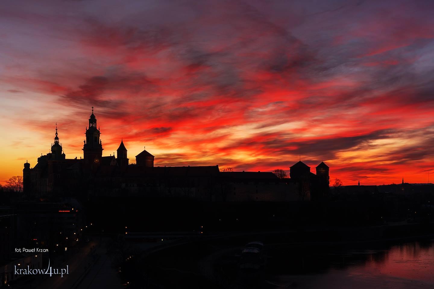 #FotkizKrakowa: "Klasycznie piękna sylweta Wawelu na tle wyjątkowo kolorowego nieba o brzasku. Luty 2016".