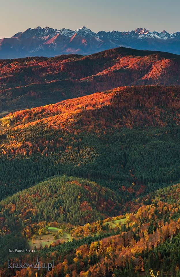 sithian: #FotkizKrakowa (a raczej okolic): "16 października 2017. W ostatni poniedziałek miałem przyjemność podziwiać taki oto jesienny kobierzec z miotanej dzikim wiatrem wieży widokowej na Mogielicy". |