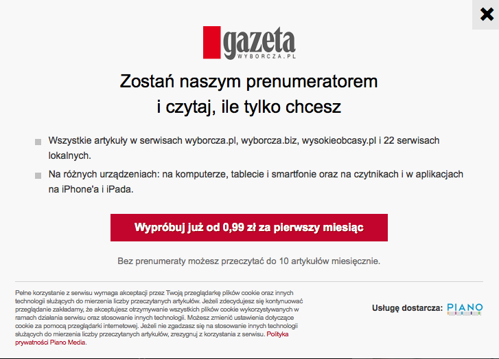 co za kretyn z #gazeta wymyślił wyświetlanie mi co chwila tego okienka? (tak, mam piano, i zanim zamknę to okno, to często mija mi chęć na czytanie artykułu)