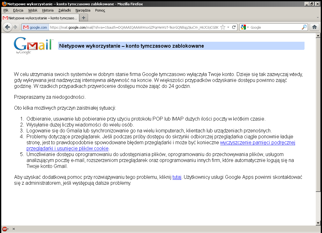#gmail zablokował mejla grupowego... jaka szkoda... jak dobrze, że mam wszystkie maile na dysku XDDDD