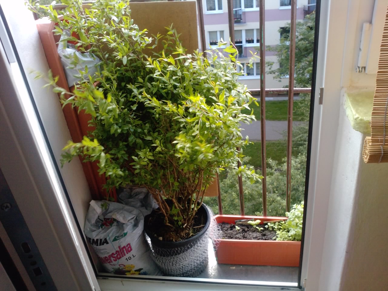 na balkonie. W tle moje ziółka i #