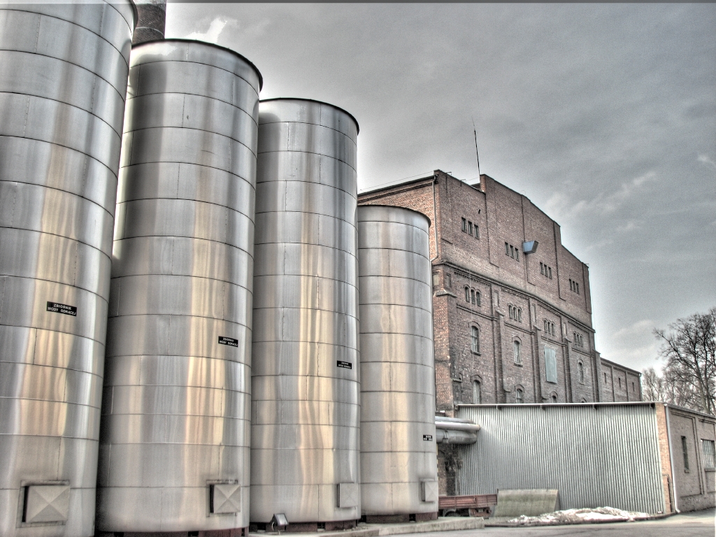 #hdr Kolumny fermentacyjne w browarze Tychy. Mapowanie to ulubiony przez coponiektórych, mocno przeparametryzowany fattal.