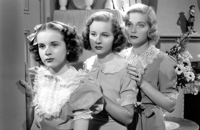 [^malalai] od lewej Binnie Barnes, Charles Winninger, Deanna Durbin, Barbara Read i Nan Grey #hga Ojciec chce sie ozenic z golddiggerka, a trzy corki probuja go powstrzymac, poleca sie komedia:)