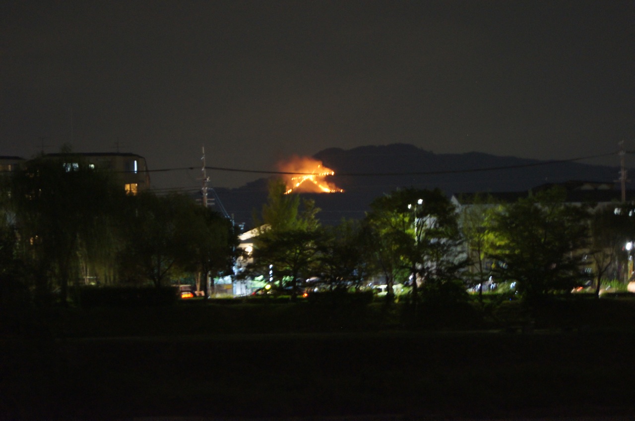 dziś noc, kiedy drodzy przodkowie wracają w zaświaty: gozan no okuribi, czyli pożegnalne ognie na pięciu górach w Kioto, tutaj znak dai #