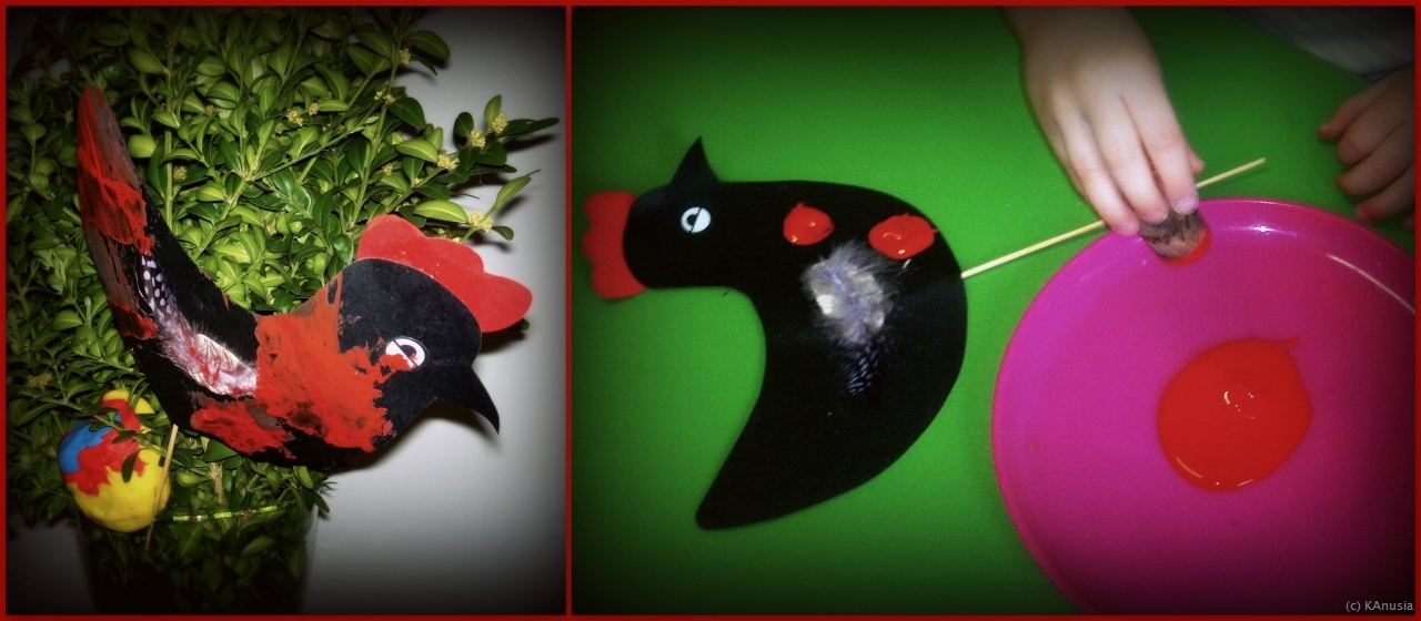 kanusia: Coraz bliżej święta: dziś z #kanczylek robiliśmy sobie jaja (aka niekształtne, wielobarwne bloby) oraz ptaka, któremu ktoś mu spuścił krwawy łomot ;))))) No ok, efekt został osiągnięty podczas transportu, na etapie tworzenia wyglądało to lepiej. |