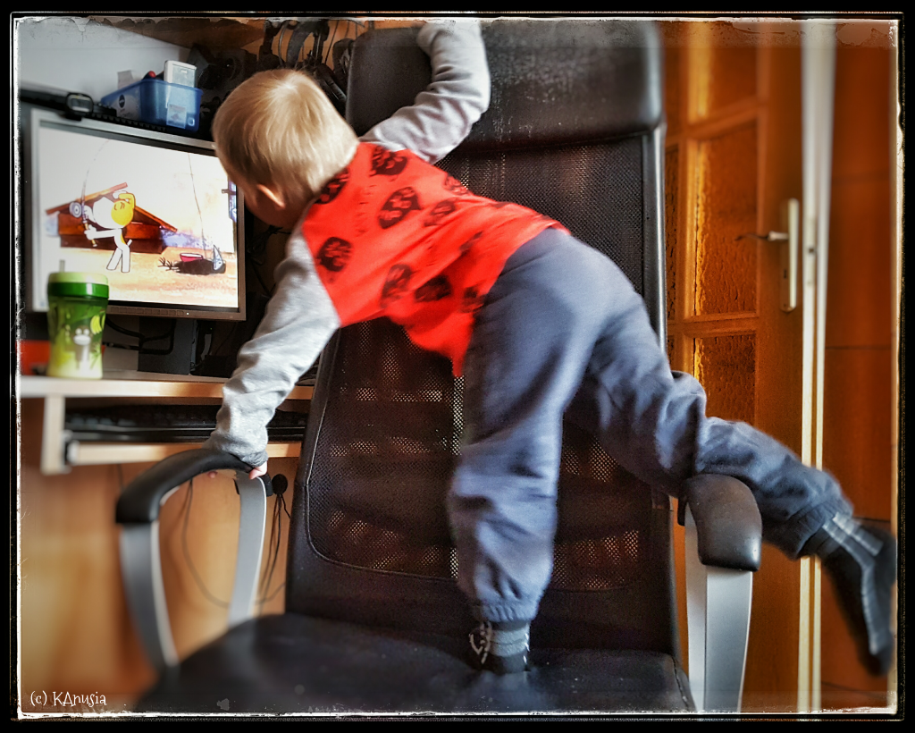 Kiedy #kanczylek zaczyna oglądać bajki, grzecznie siada w fotelu w pozie klasycznej. Ale po chwili, gdy stopien podekscytowania przybiera na sile, jest mniej więcej tak, pozycje oczywiście non stop ulegają zmianie...