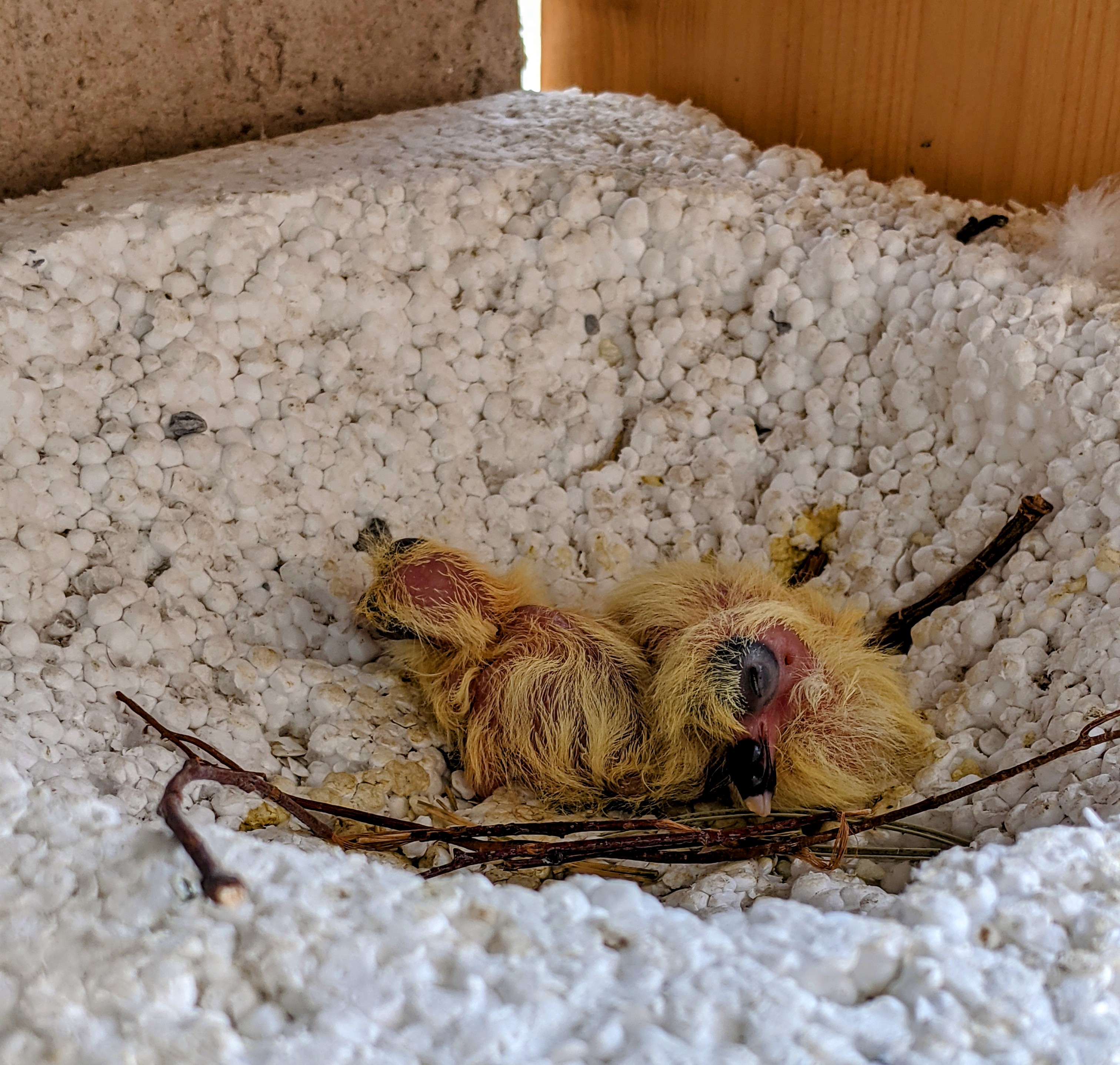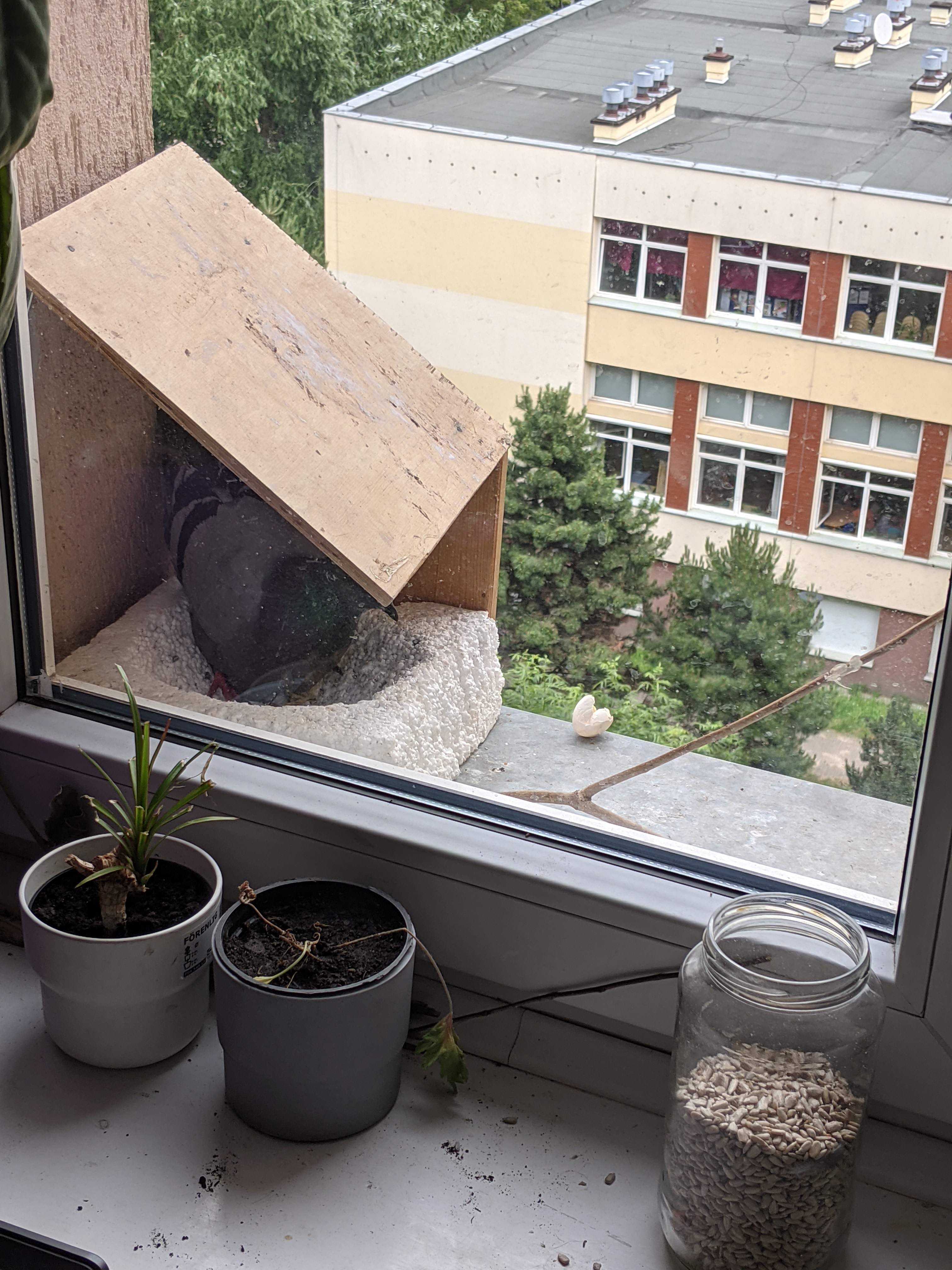 antek: Aha, w temacie #keepingupwithpigeons są już dwa bombelki pod głodną i bojową matką (dziobnęła mnie w palec, jak sypałem ziarno, ale tak ostrzegawczo tylko) |