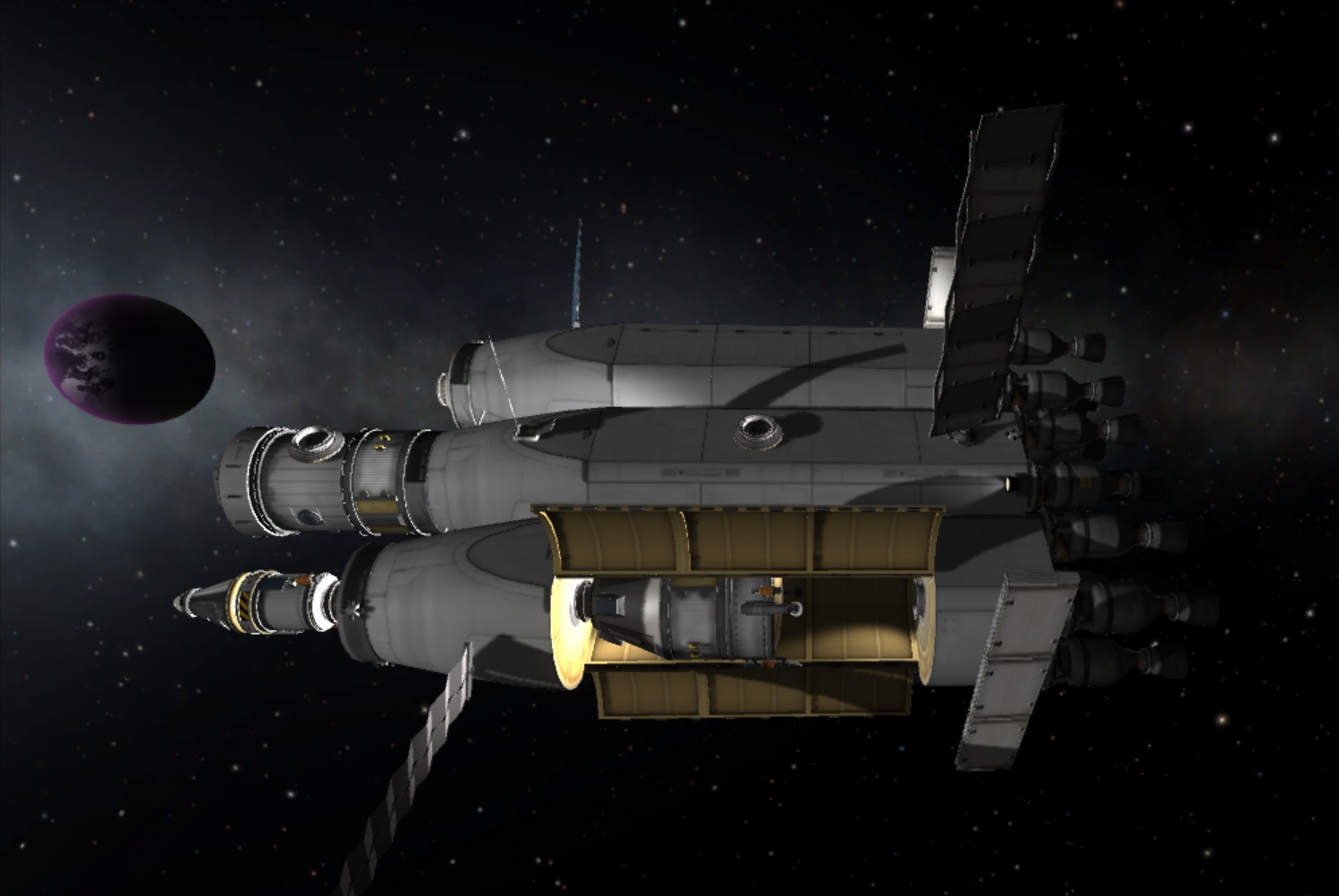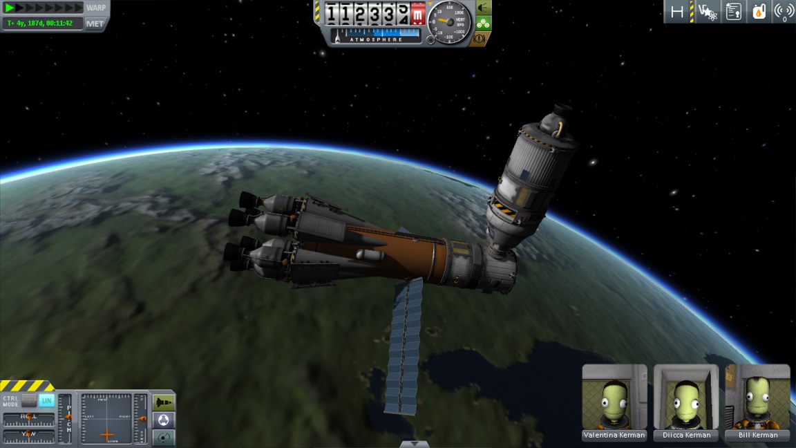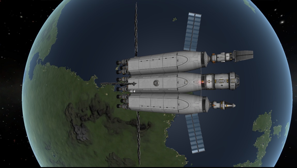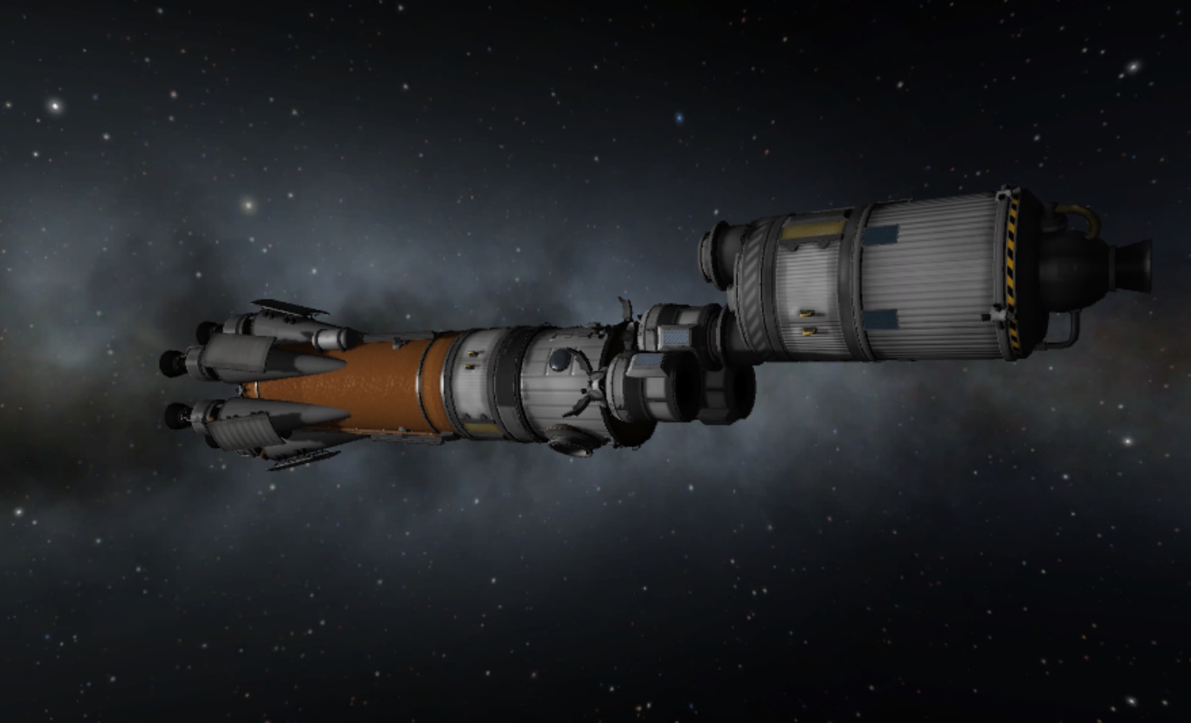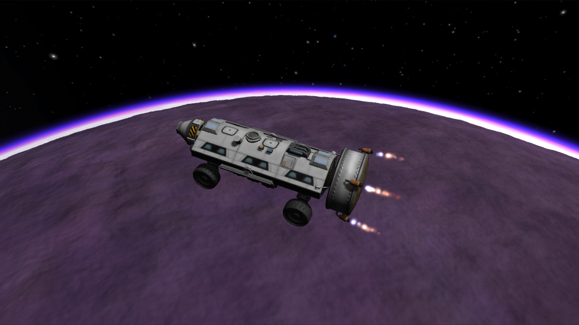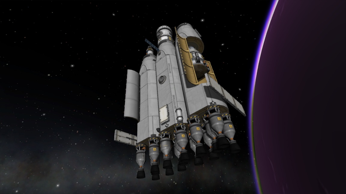 boni01: [^boni01] Sonda wypakowywana na eliptycznej nad Eve/Wenus, mniej więcej zadziałała (dwa silniki się zmechaciły z bliżej niezrozumiałych powodów, dobrze że nie wszystkie 4). #kerbal |