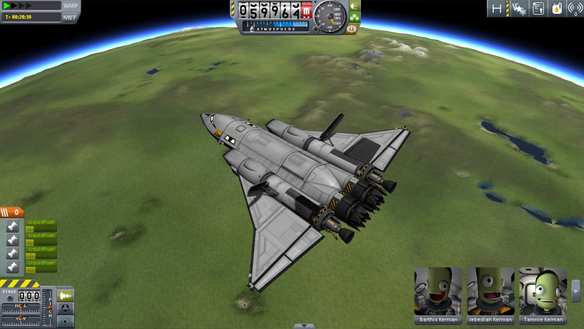 boni01: [^boni01] Okazalszy widok wahadłowca (jeszcze nie da się w praktyce w samoloty orbitalne), chyba dopiero 4 samolot w tej grze. Wszyscy się cieszą, że wracają, będzie się czym dzielić (punkcikami itd)... #kerbal |