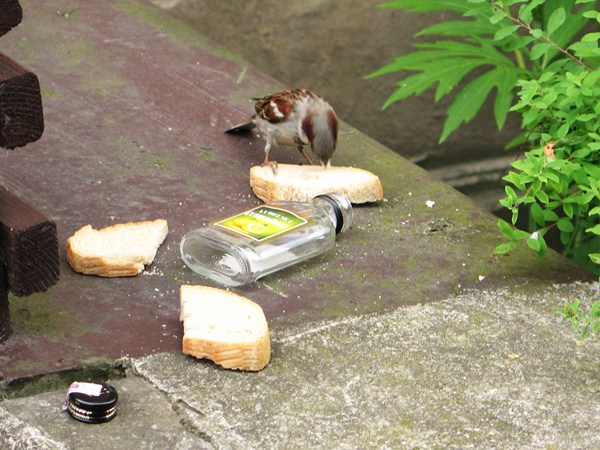 Wróbelek Menelek ;] Flaszka pusta, ale zagrycha jeszcze jest :) #