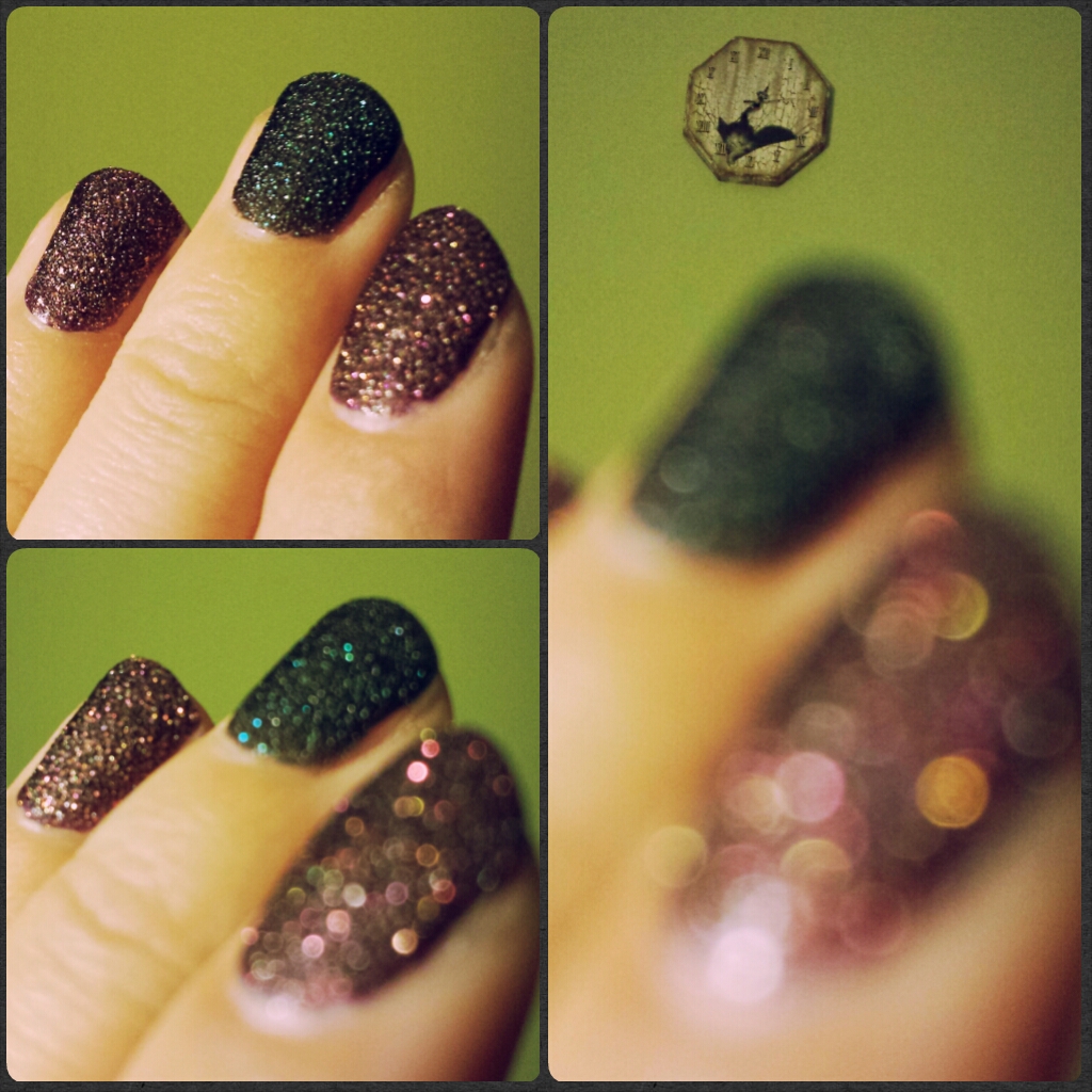 Tani piasek marki Wibo. Całkiem fajny, ten fioletowy bardzo dobrze kryje, czarny słabiej, ale przy 2x daje radę. Oraz mój zegar z kotkiem z Krakowa, w tle :) #