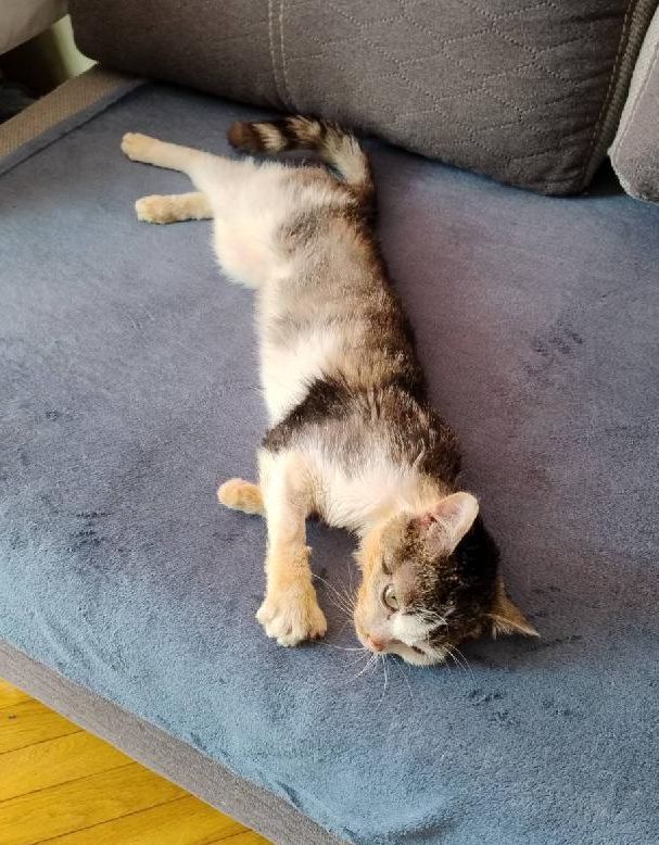 malalai: Uwaga, będzie spam kotami. Najpierw #kiciaTori w DT (który raczej stanie się domem na stałe). Po wizycie u neurologa, dostała leki, nie było RM jeszcze. #pokakota sama weszła na kanapę, nikt nie wie, jak. Wojowniczka! |