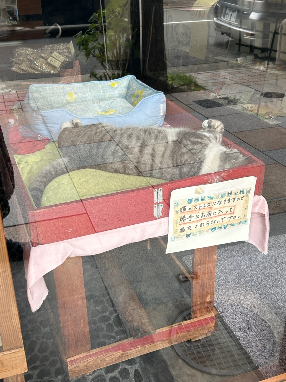 prosimy nie wchodzić do sklepu i nie głaskać samowolnie kotka, bo go to stresuje #kioto
