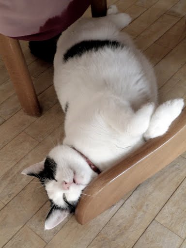 w poszukiwaniu cienia #kot Moryc schronił się w kącie za stołem i regałami; teraz wydobywa się stamtąd błogie pochrapywanie/postękiwanie przez sen