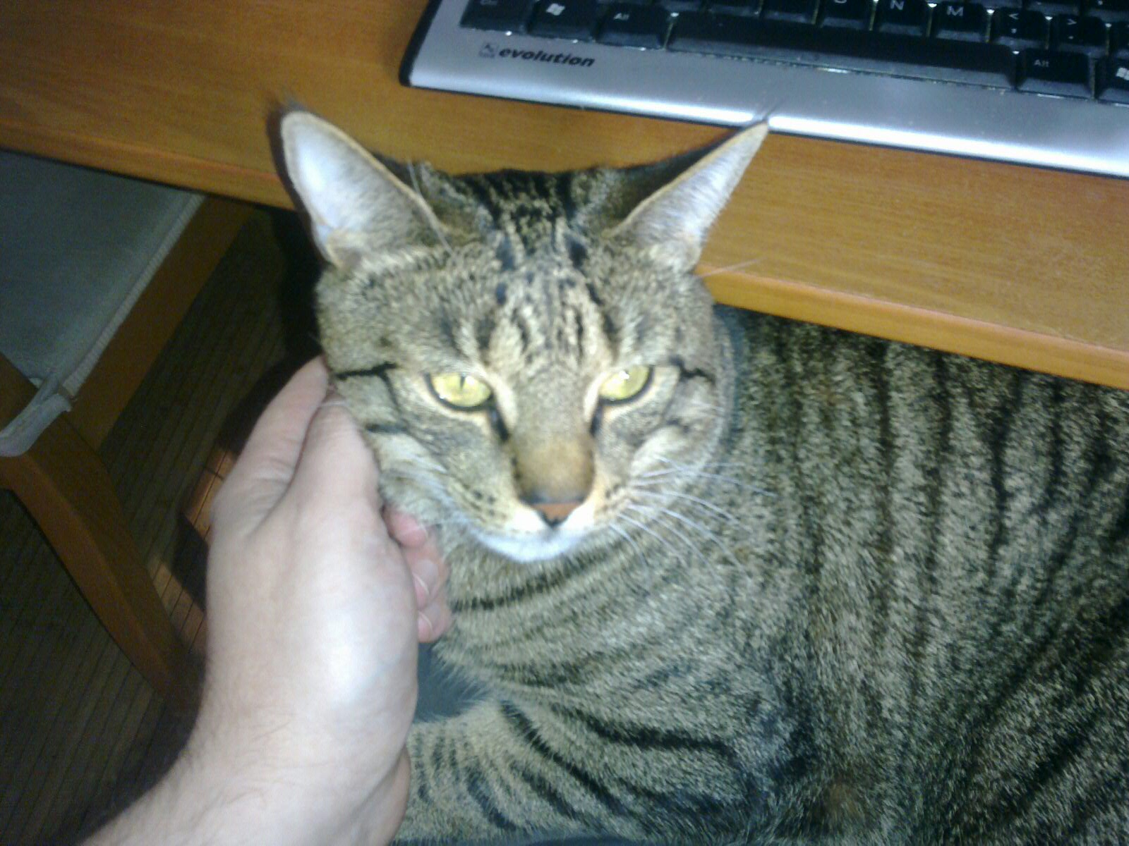 Aha. Ok. Dzia usiadl pod biurkiem i sie lasi. To dziecko zdecydowanie za duzo ma ficzerow #kot.a.