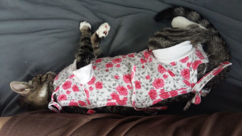 A #kot Pinky wczoraj, nie licząc przerw na spanie i jedzenie, całe popołudnie biegała. Wet pozwolił zdjąć kubraczek ;)