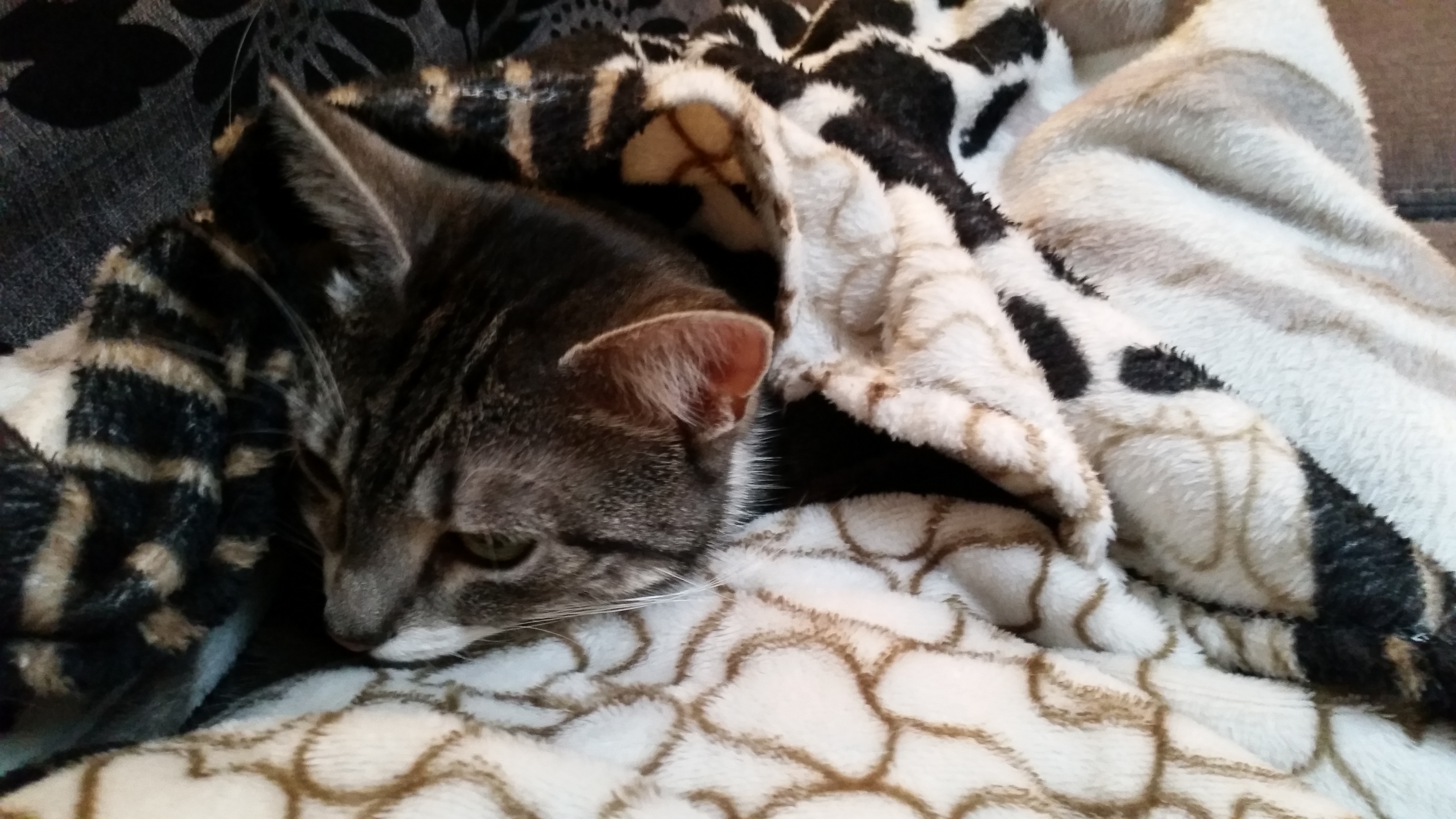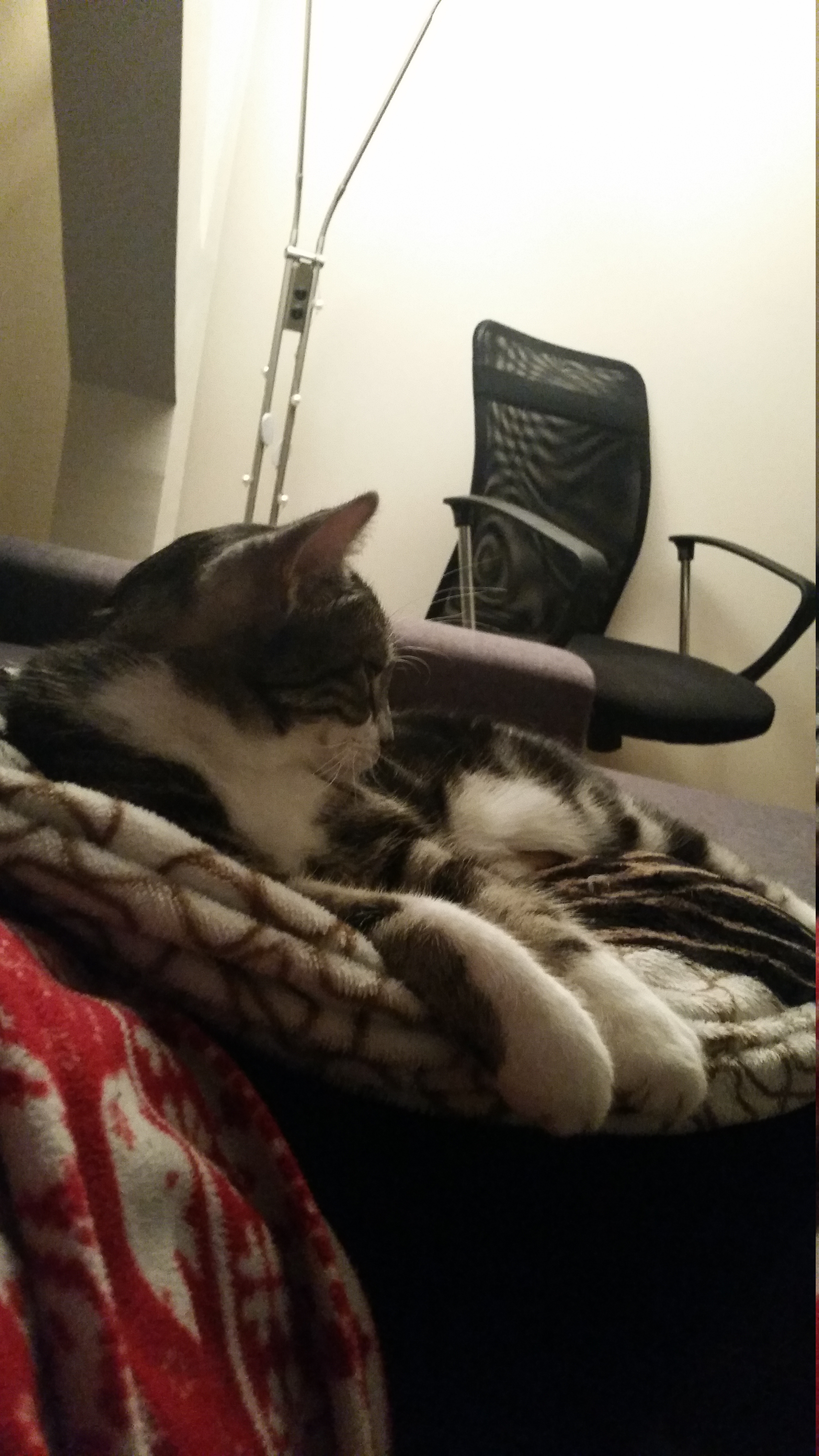 na mnie namiauczała, że mam się nie wiercić jak leży mi na kolanach