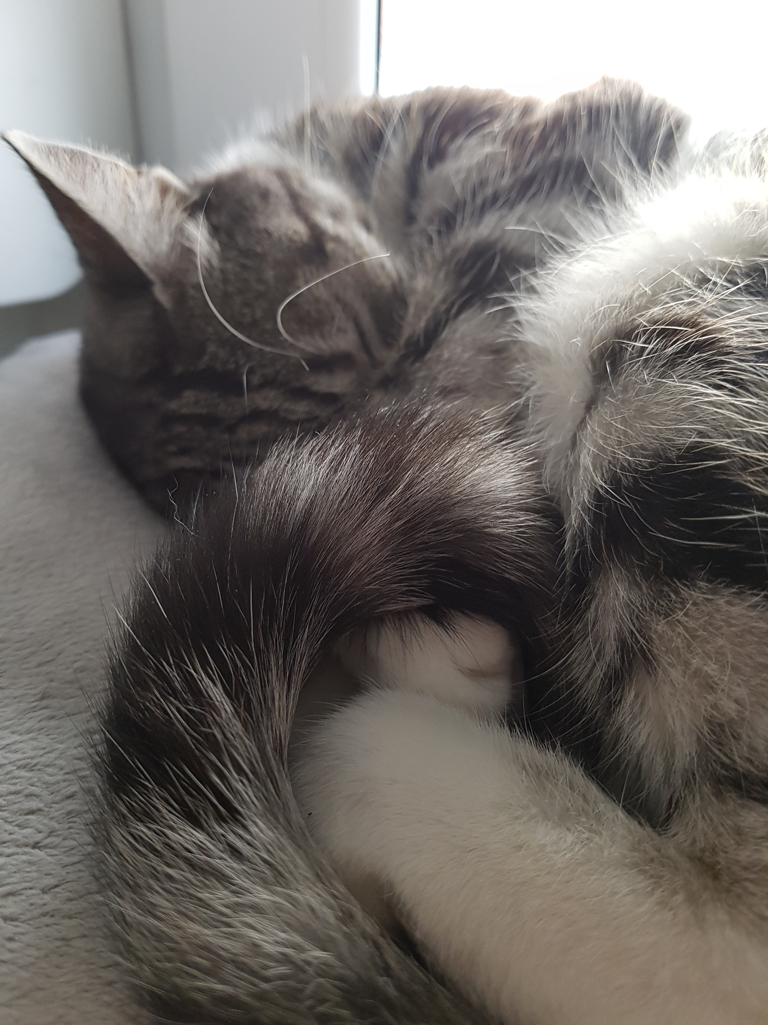 Musiało być dzisiaj zimno w nocy, skoro Samba spała wtulona w tyłek #