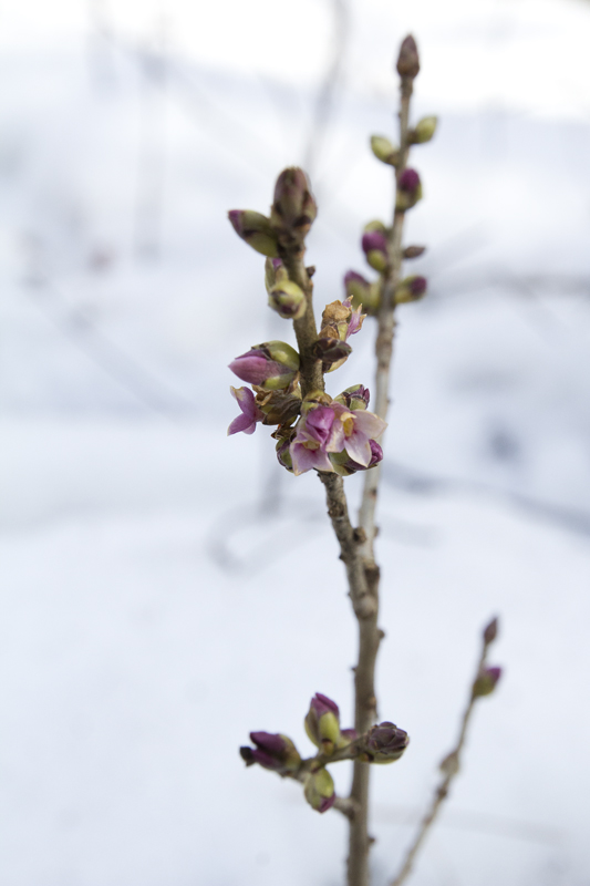 #wiosna #krzaki i wawrzynek na śniegu