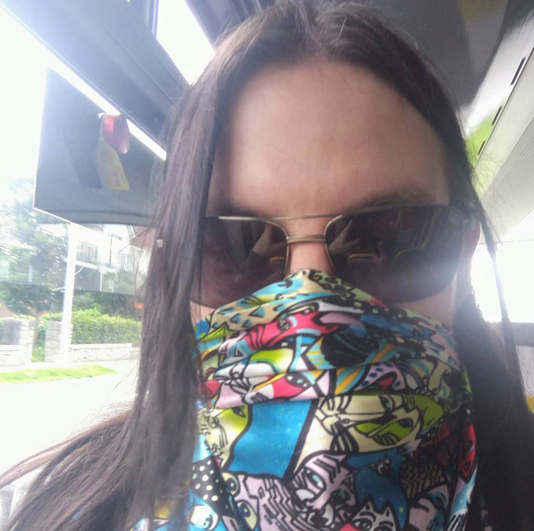 Poszliśmy na wioskę. T. zapomniał maski (nie, żeby miał aż 3 grrr). Za karę musiał poprzestać na mojej apaszce. Nazwał to "bank robber chic" #