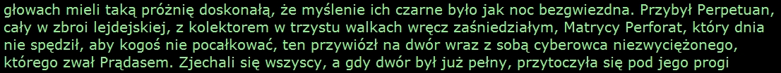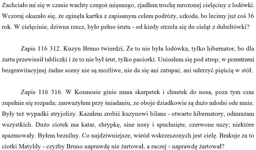 gammon82: [^hipokampus] nie, odpowiada się na bieżąco, u kresu jest tylko trzy ćwierci do śmieci, dwie ćwierci do śmierci, jedna ćwierć, punkt zerowy czyli śmierć (#Lem) |
