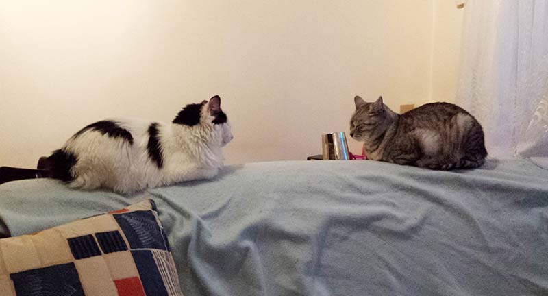 Koty postanowiły usnąć naprzeciwko siebie, na oparciu kanapy ;) #lilkotka #kapsulka