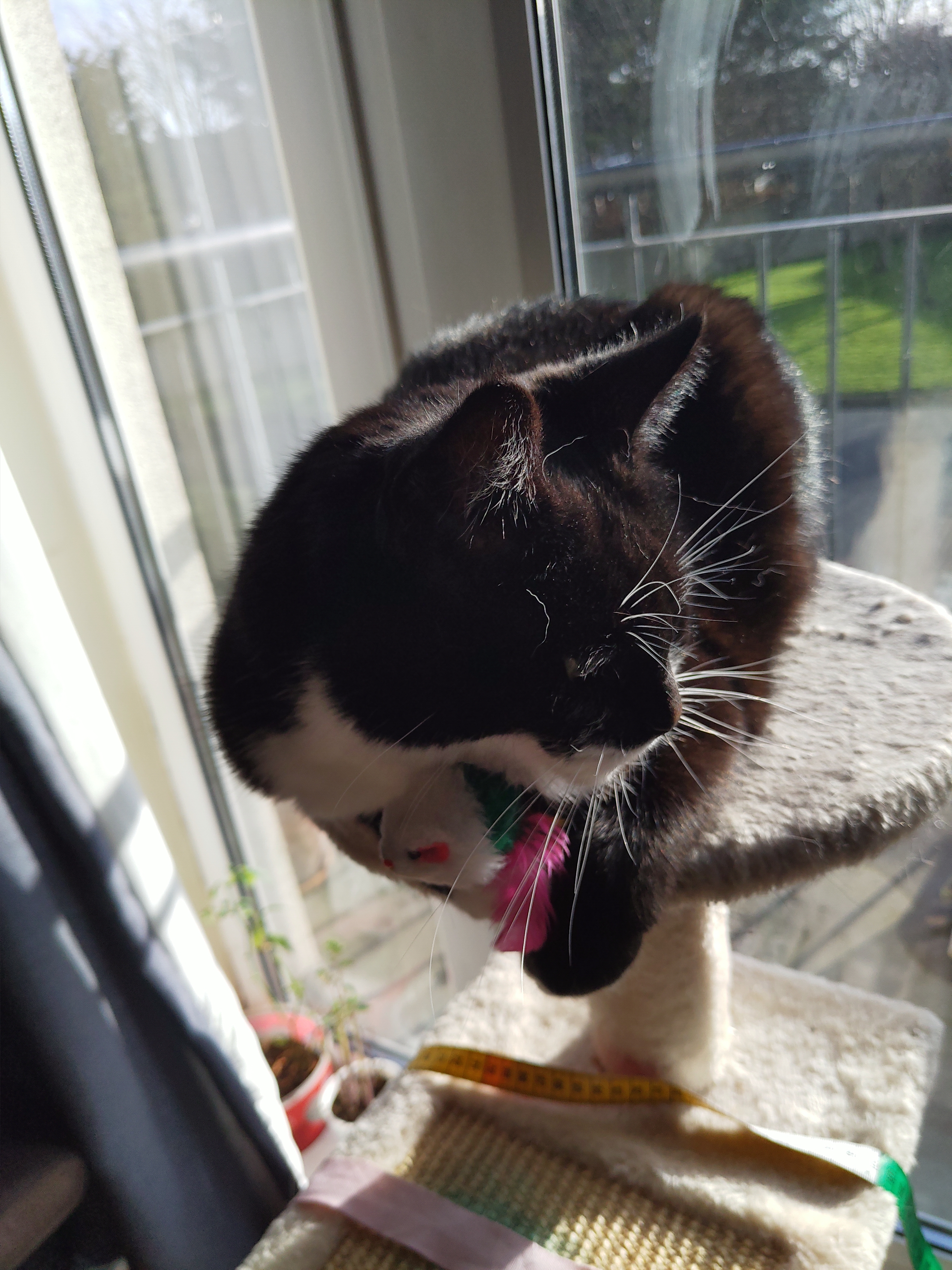 #pokakota #maggiemay sprzed paru dni. T. znalazł jej starą zabawkę pod kanapą i teraz kociej radości nie ma końca :)