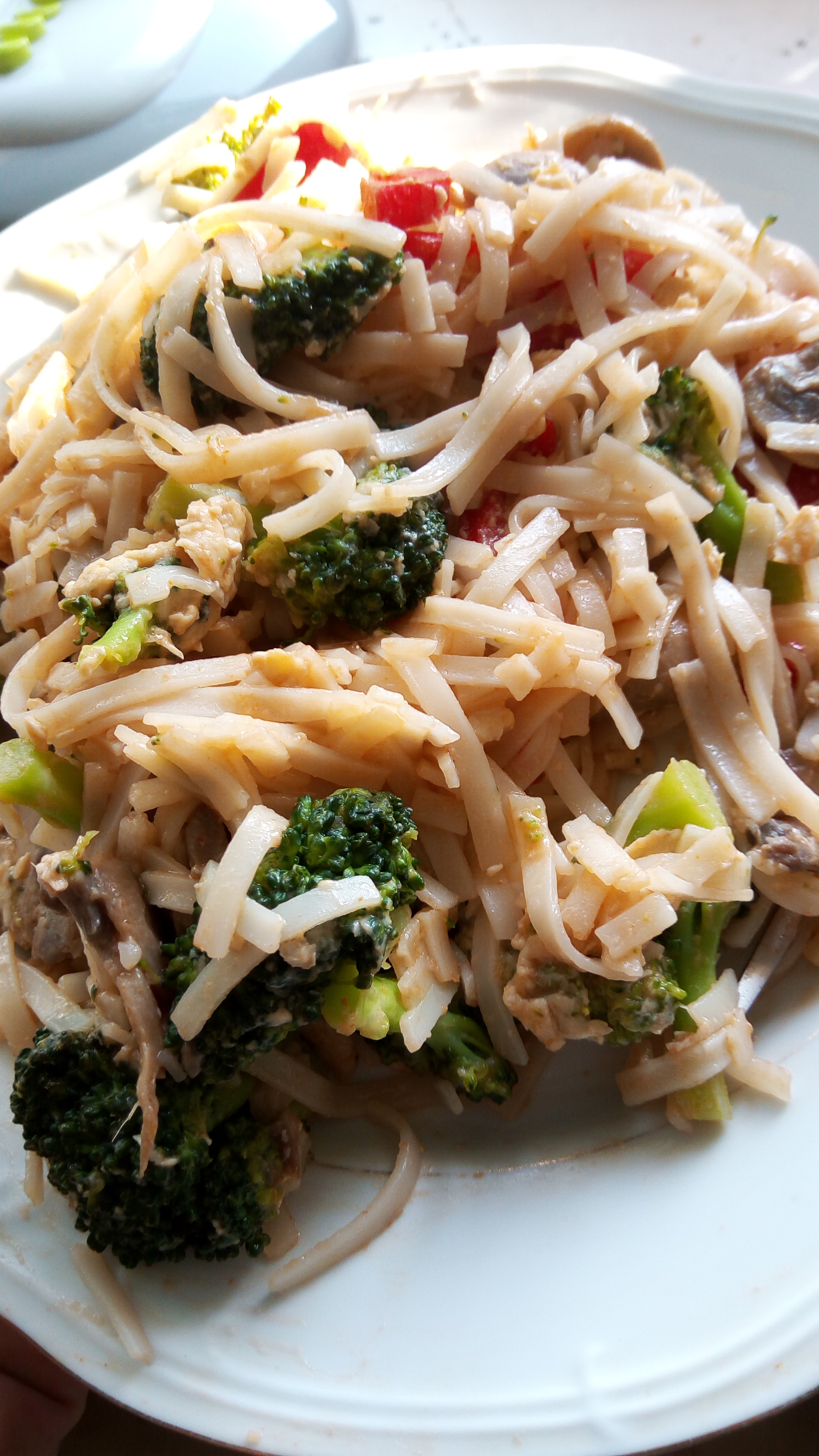 makarą ryżowy smażony z jajkiem i warzywami.