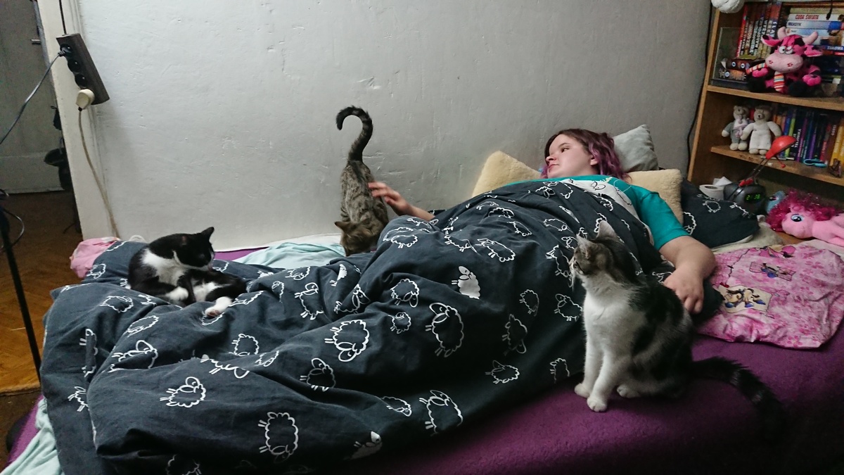#Mruczynka w pełni mobilna, wczoraj jak tylko łapki zaczęły działać na sensownym poziomie to wlazła nawet na szafę i tam spała... jest dobrze, będzie lepiej
