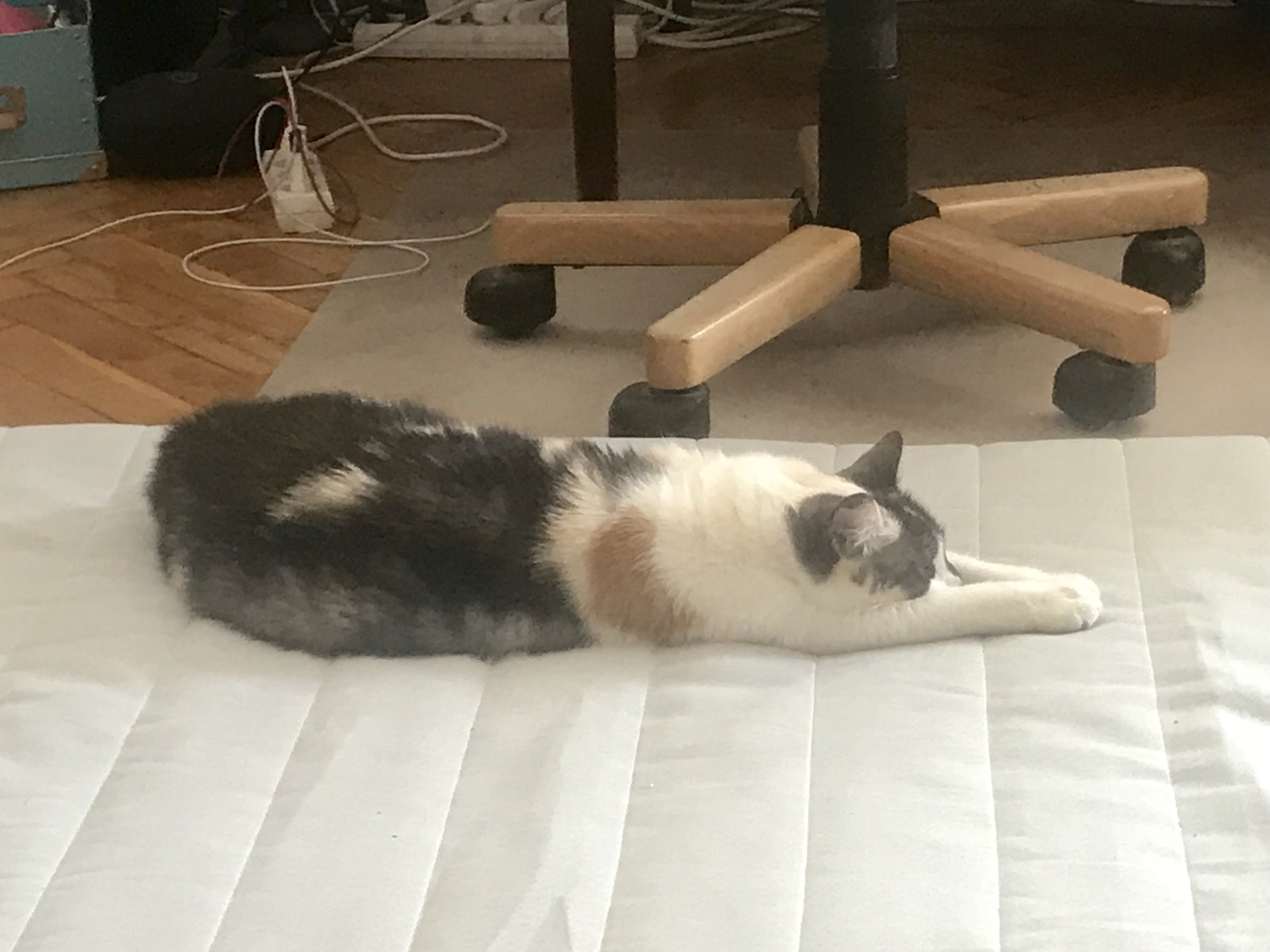 tymczasem #nowamała Chihiro zalega na drapaczku i co jakiś czas pokwakuje przynaglająco, żebym przyszła się zachwycać