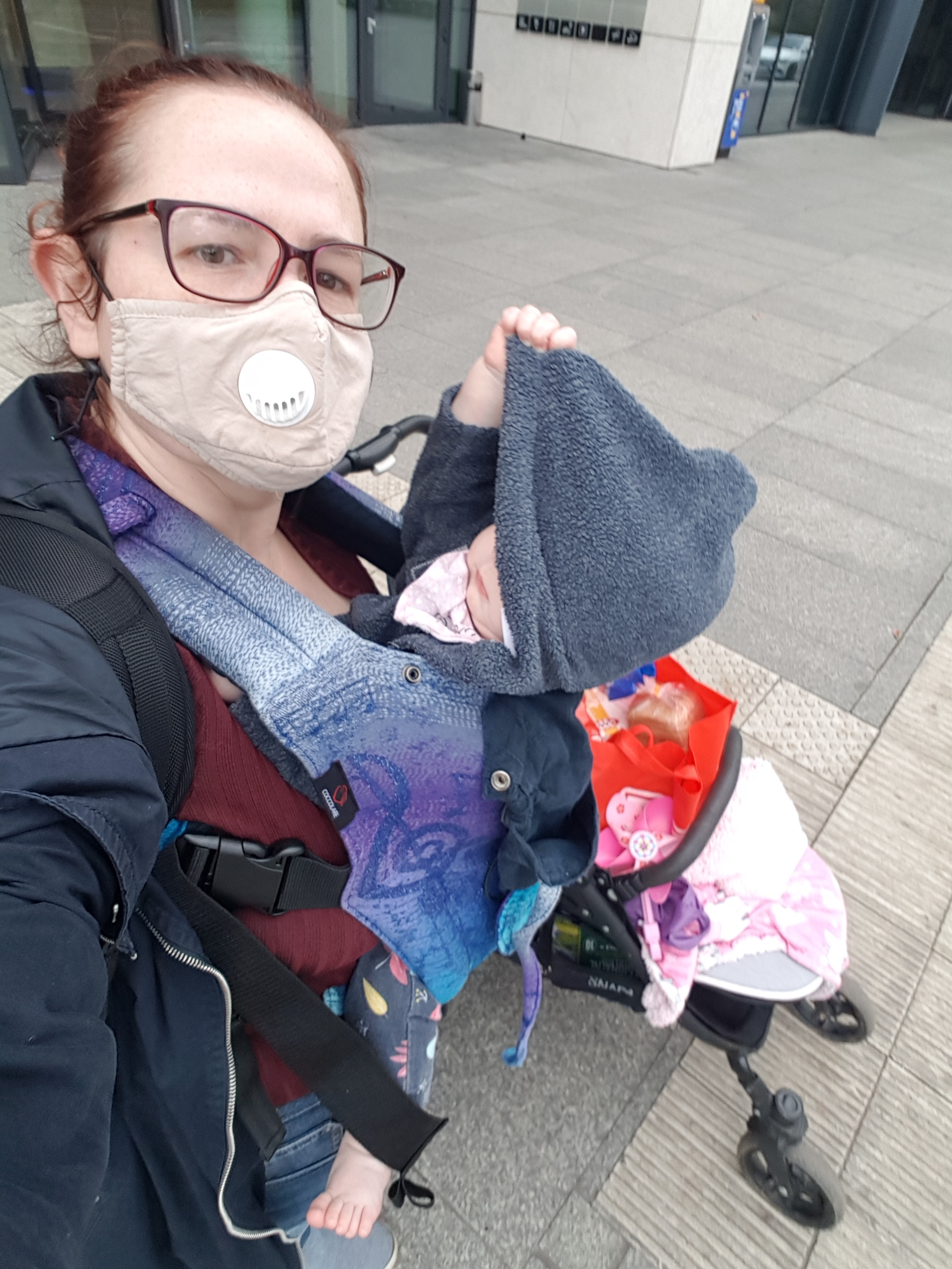 Stado w samoizolacji bo potencjalnie kontakt (osoba z kontaktu czeka na test), więc zrobiłyśmy z #Okrushek zakupy dla nich. Spoko, zapięłam potem kurtkę bo KTOŚ zgubił skartepy #pokakrushynke
