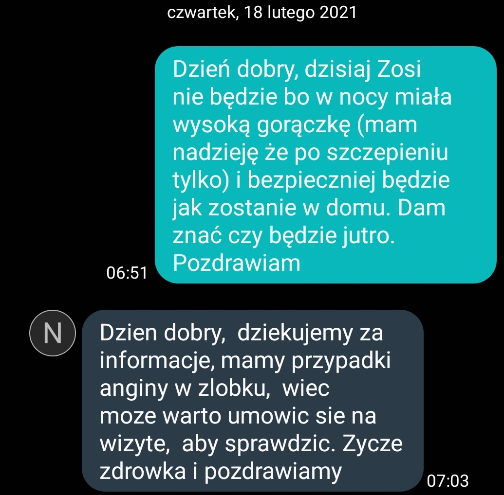 Uff, #Okrushek dzisiaj lepiej znacznie, więc to na 100% reakcja na szczepionkę, a nie angina <3