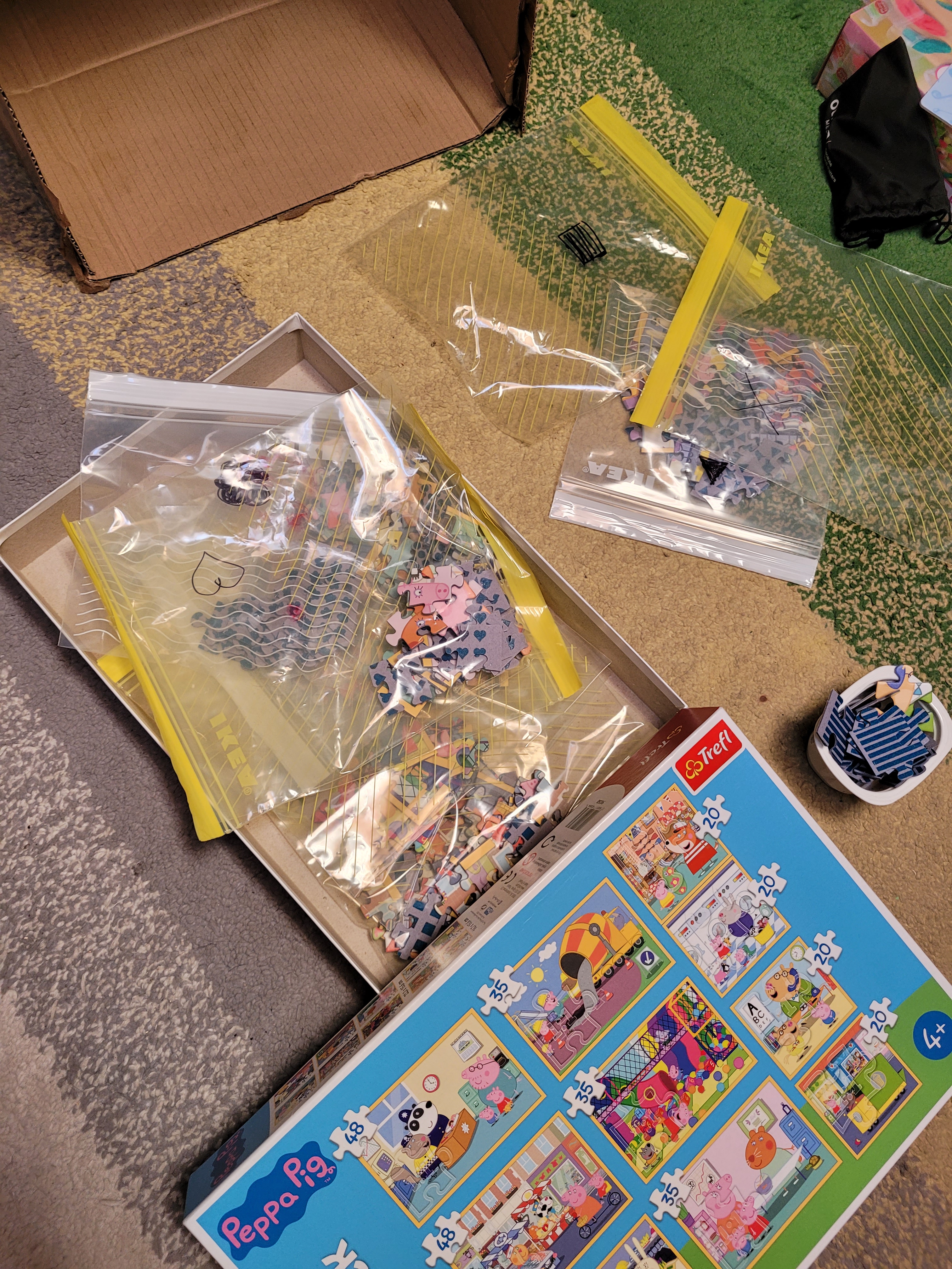 Ponieważ #Okrushek dostała na dzień dziecka puzzle 10w1, bawiłyśmy się dzisiaj w puzzlowych dilerów. Co za pojeb wrzuca wszystkie elementy do jednego worka?