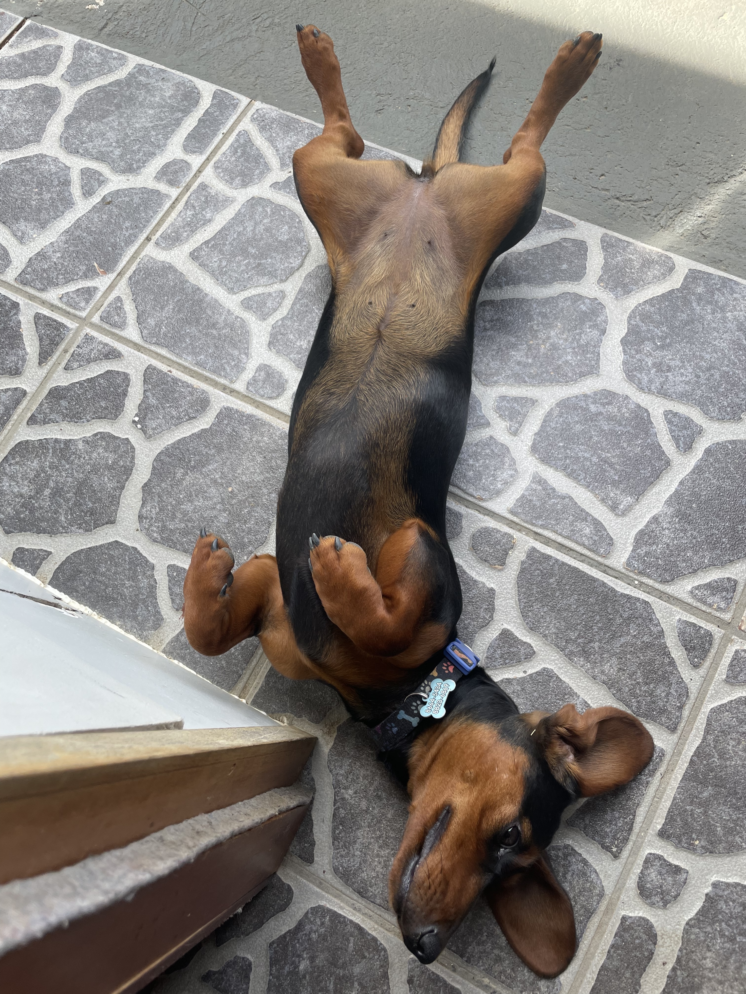 Oborze zapomniałam, że zrobiłam fotkę jamnikowi z Ukrainy, który chwilowo mieszka u szefowej, z panią i dwónką dzieci. Ojciec został z kotami w Charkowie (albo Kijowie, nie jestem pewna). #pokapsa #pokajamnika