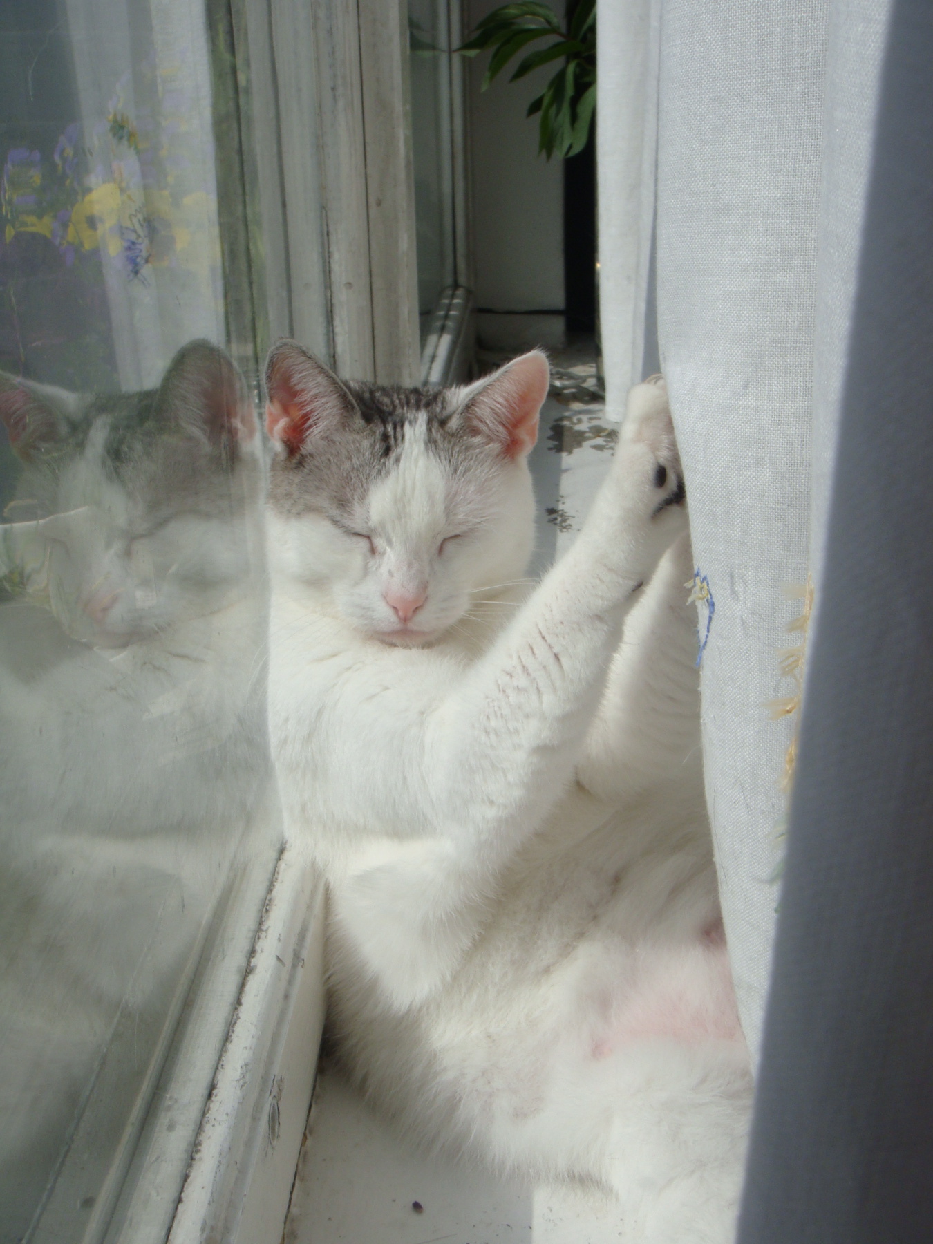 co za bezczelna kicia, zaczepia się pazurkami i tak sobie wisi, bo jej wygodnie!