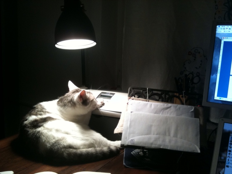 w nowym domu lampka jest po lewej stronie komputera, ale Źiżi dostosowała się do sytuacji