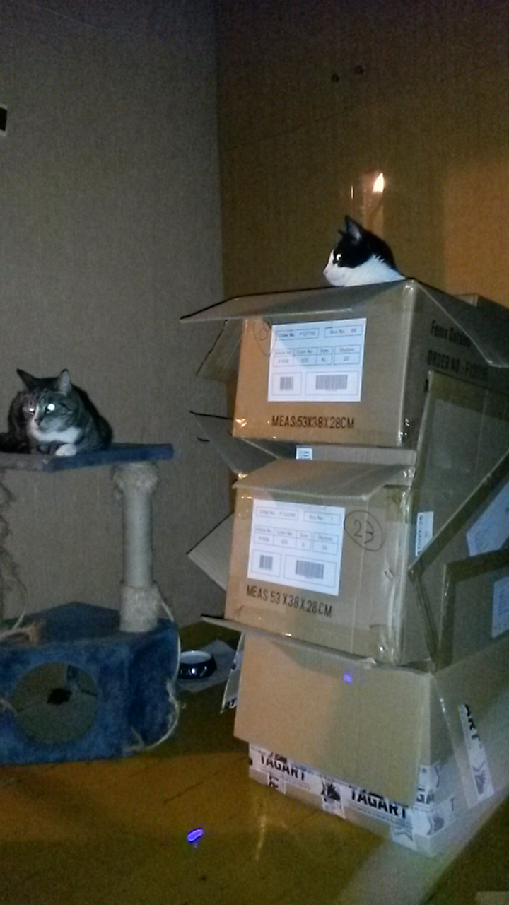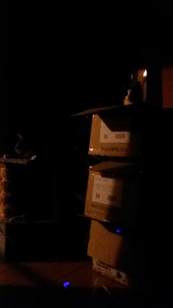 ] oraz wersja z komórkową latarką dla rozjaśnienia sytuacji (kartony zgromadzone do przeprowadzki) #