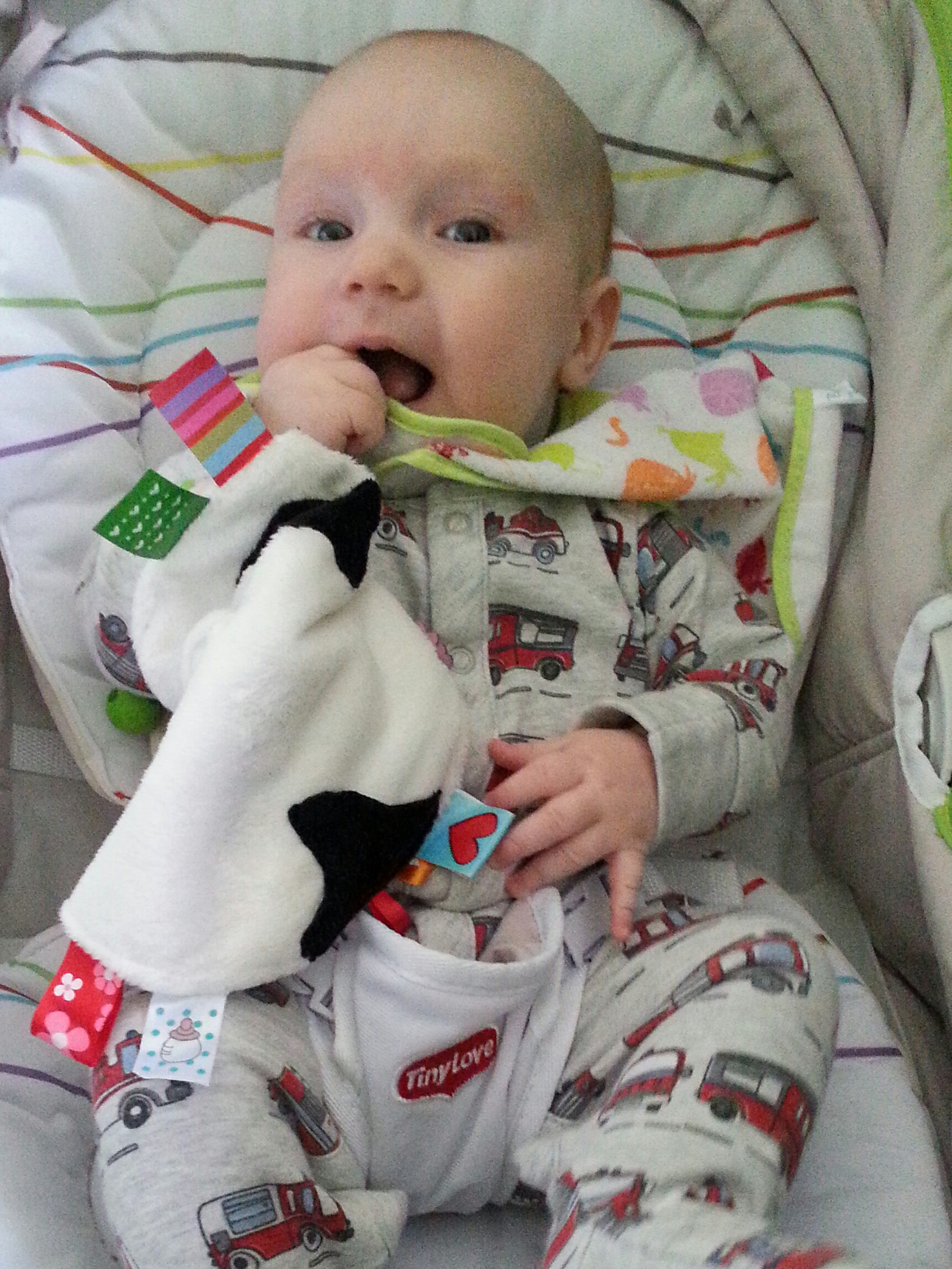 Ach, te wybuchy frustracji, kiedy się daje czegoś zrobić i te kolejne próby do skutku! Jakbym siebie oglądała. Na szczęście jeśli piłki nie da się wpakować do buzi, to smoczek się da i można zasnąć i z jednym, i z drugim. #pokaKumkwata