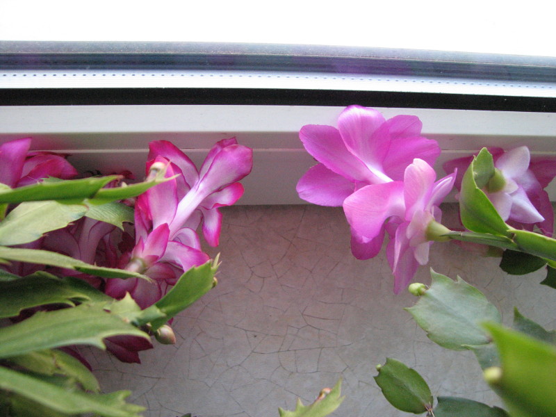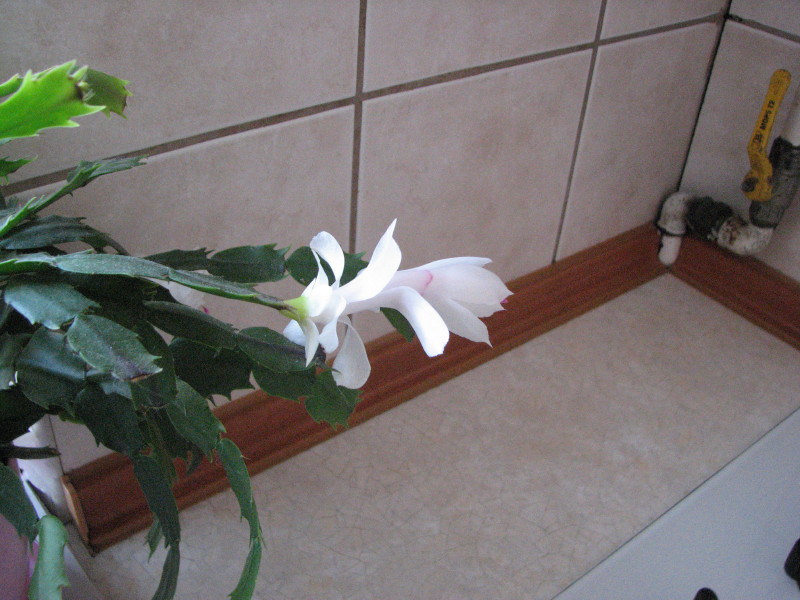 Biało-różowy najbardziej kwitnie na wysokości parapetu, ale jeśli postawię doniczkę wyżej, #