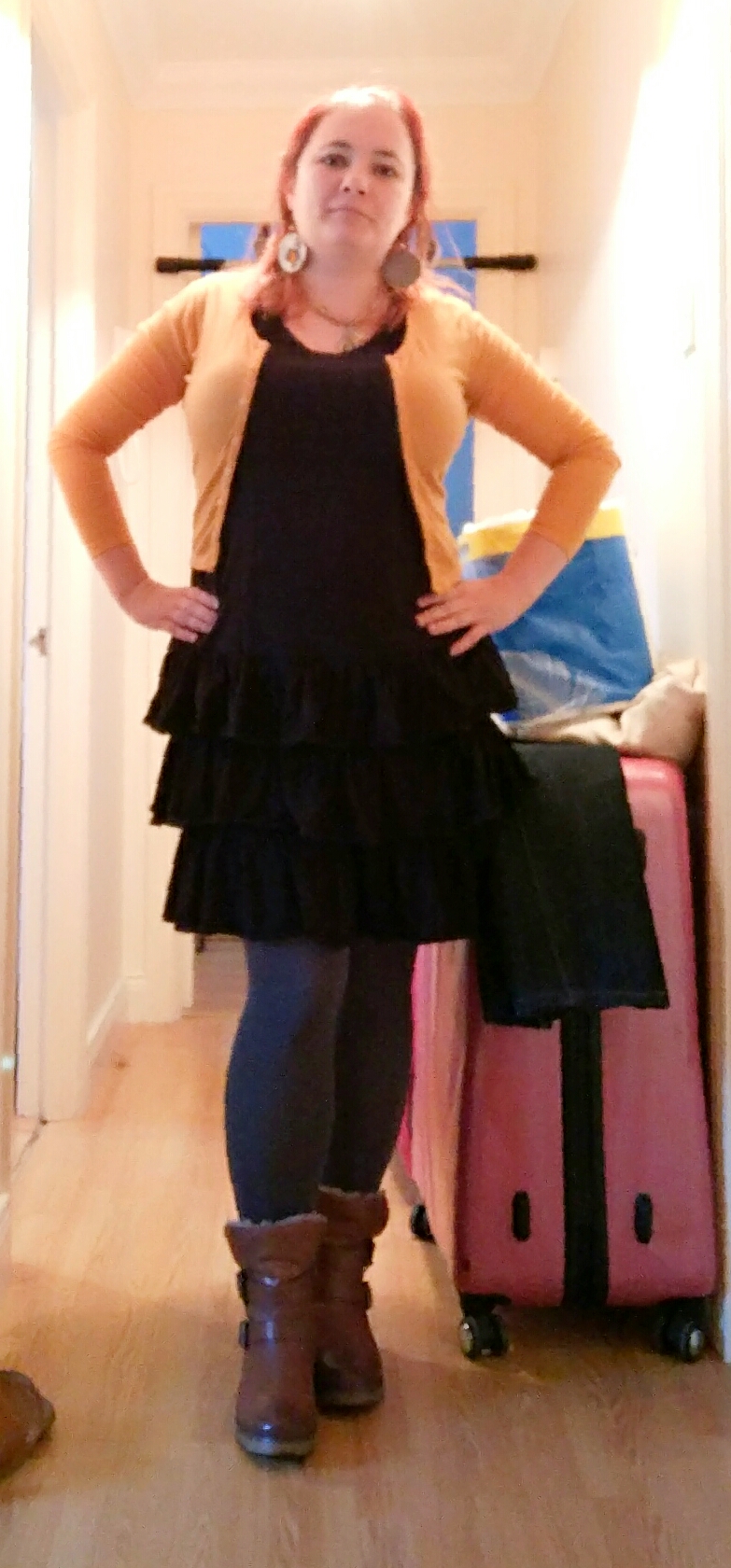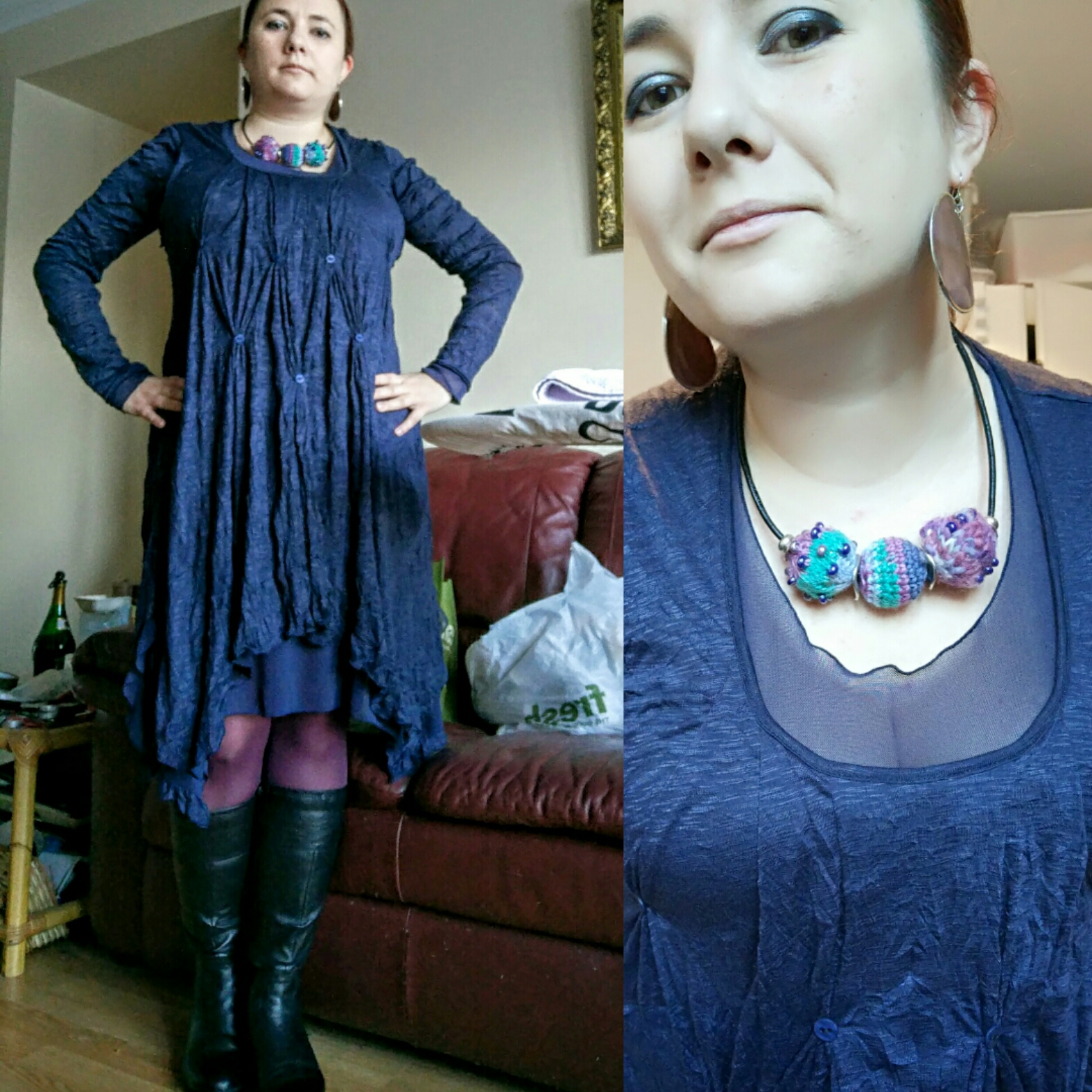 Dzisiejszy wysuczing sponsorują: jagodowe rajstopy, nowa sukienka z charity shop, nowe kozaki, koraliki w sweterkach #pokaochdowuja