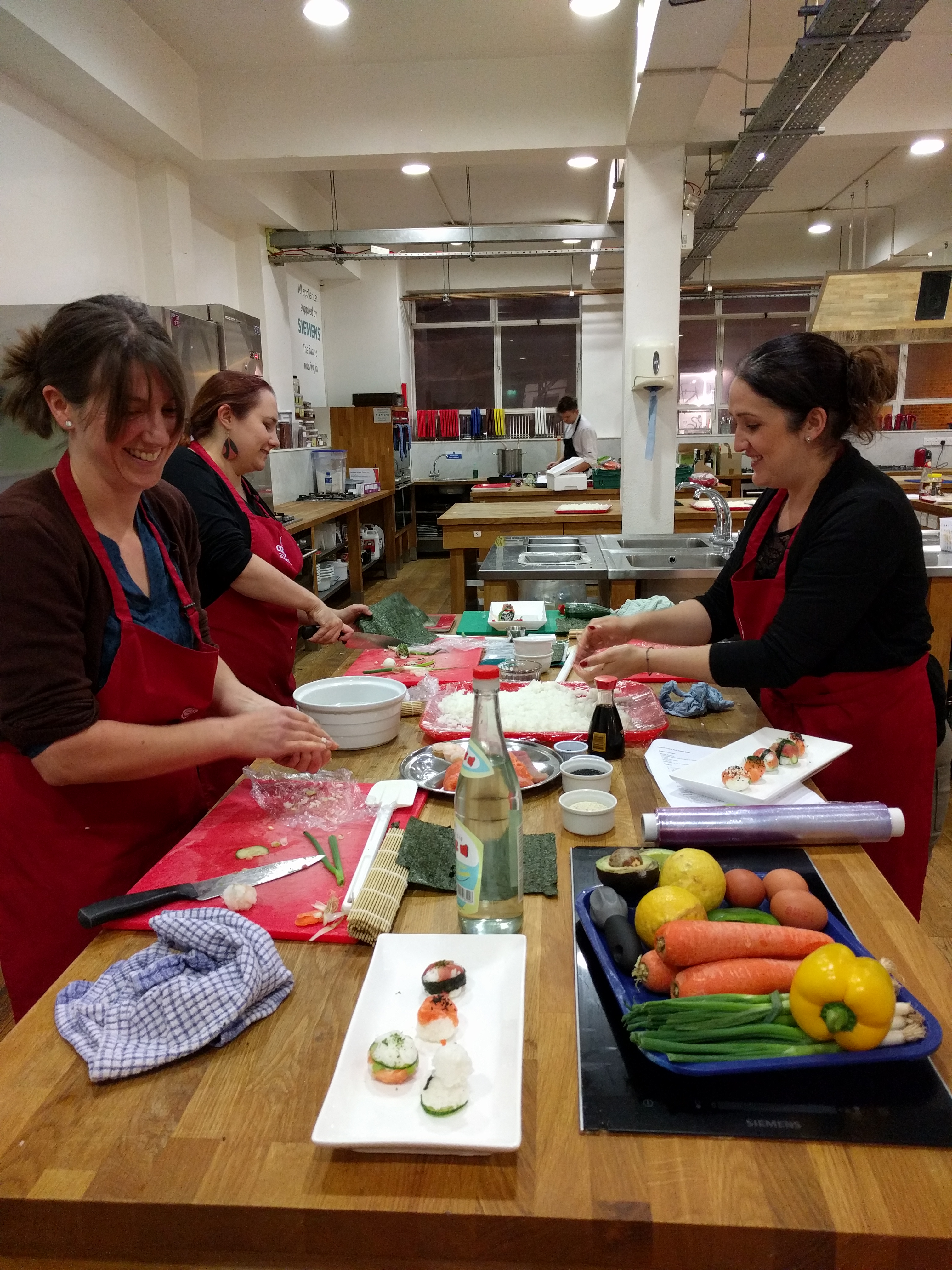 z warsztatów sushi. Pocieszam się, że to nie tylko ja, koleżanka po prawej jest średniej budowy, a też wyszła jak ropucha.