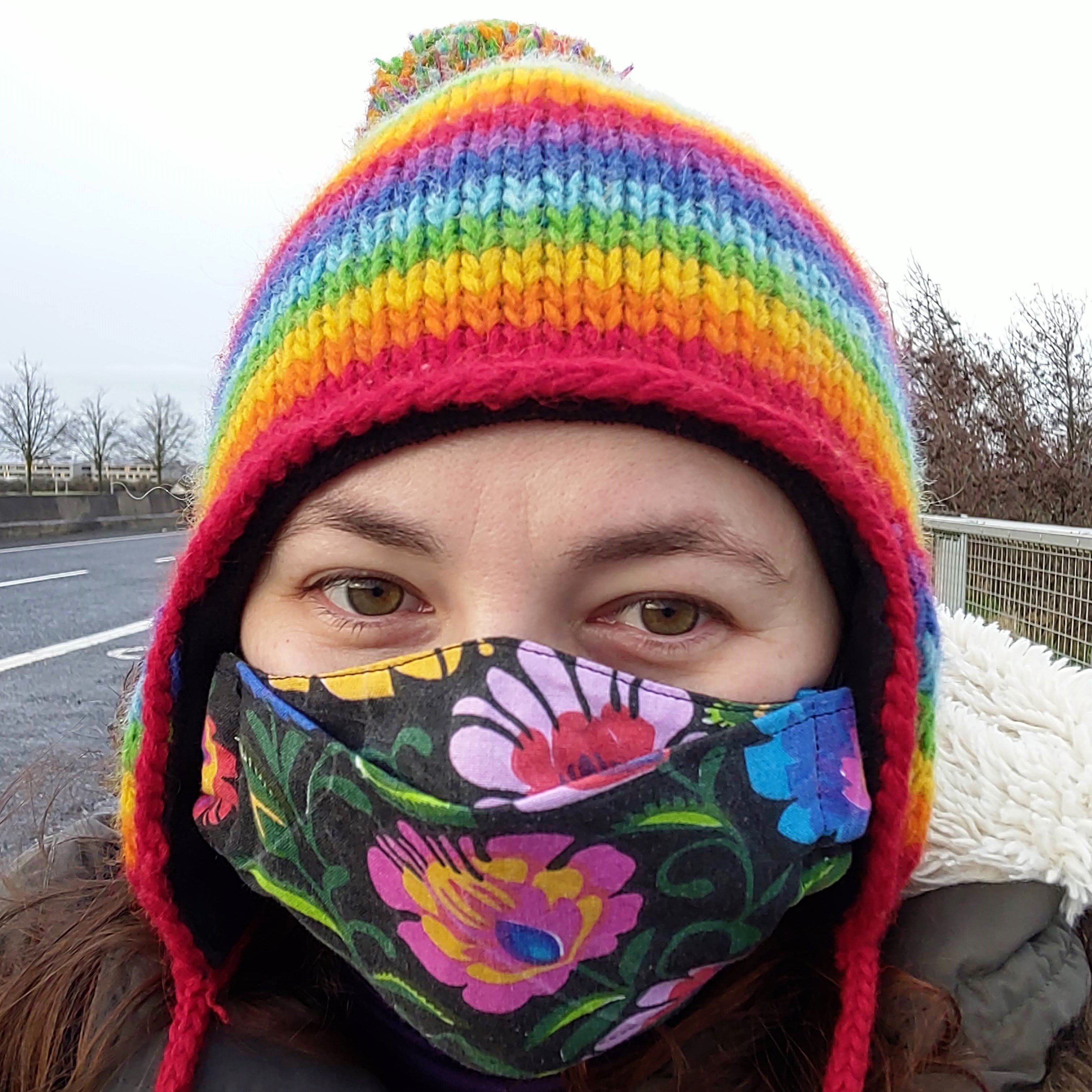 (przedtem mialam w tej samej czapce i kurtce, tylko bez maski)