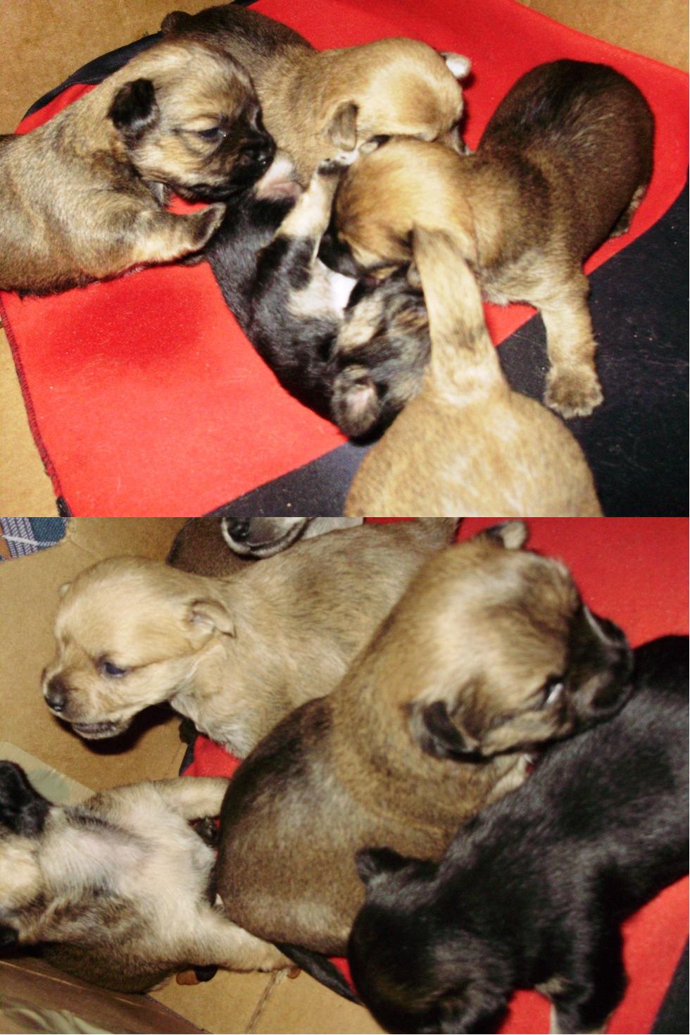 Co mogą robić niespełna trzytygodniowe pasztety? Oczywiście gryźć się, poszczekując przy tym i powarkując. Brak zębów im najwyraźniej nie przeszkadza (#